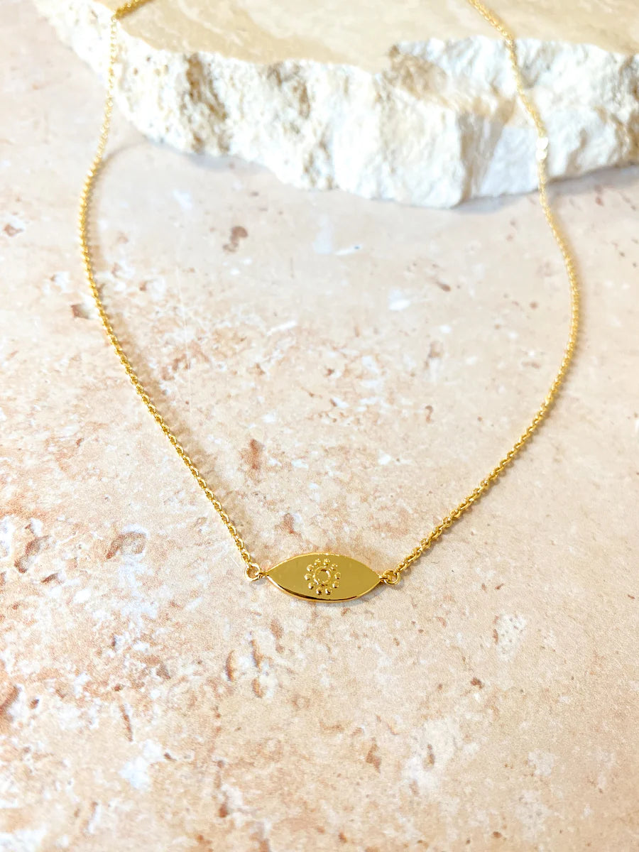 Part of our Lustre & Sage collection, our Ayin Necklace is a dainty & timeless 18K gold plated piece that will complete your everyday look.