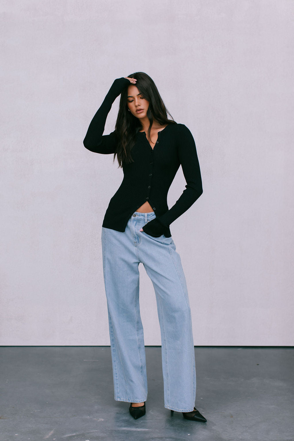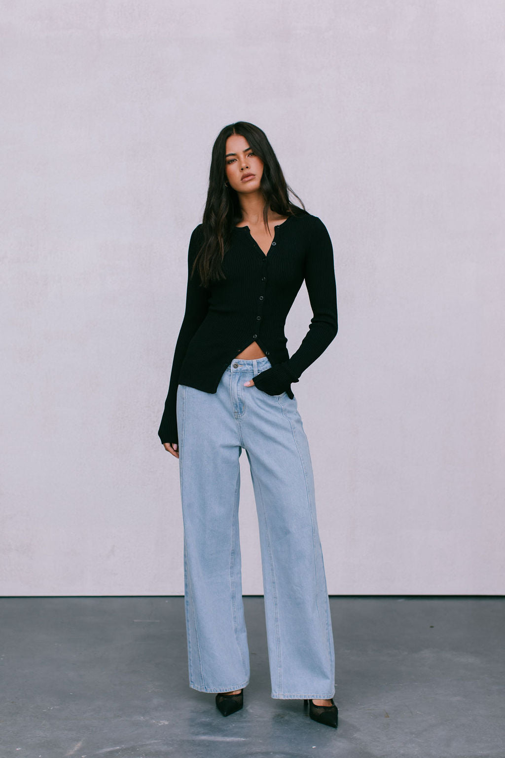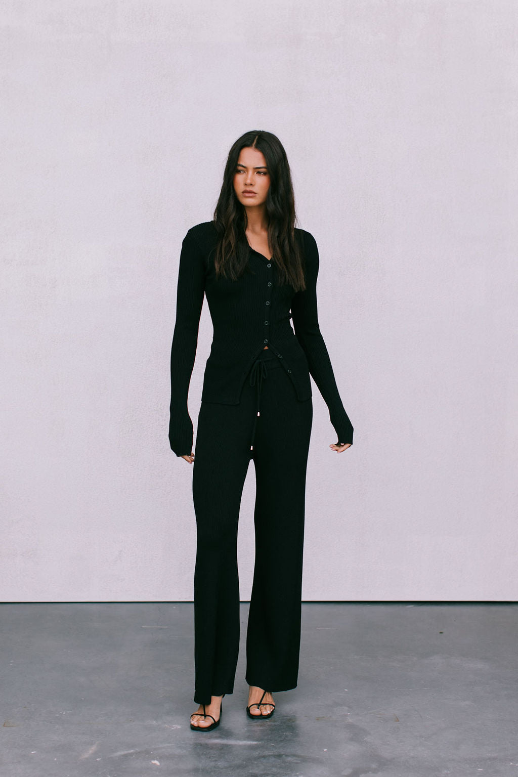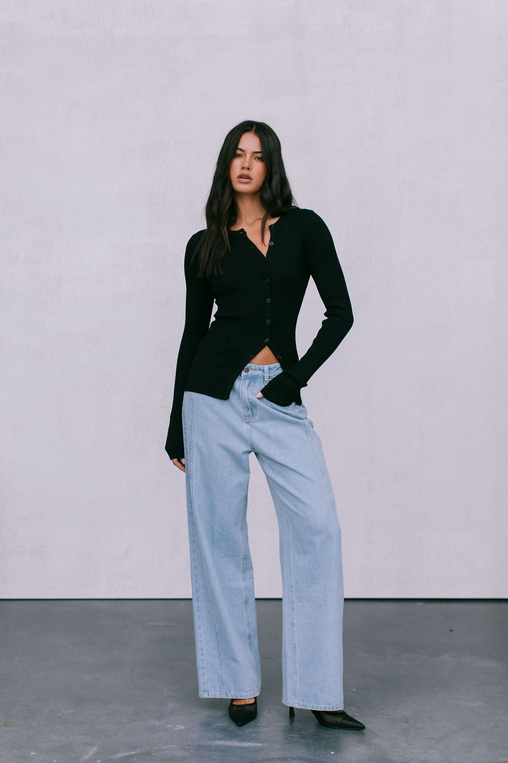 Meet our Brianna Knit Top, the ultimate capsule piece to add into your autumn-winter wardrobe. Her soft ribbed knit, fitted silhouette + a flirty adjustable, asymmetrical button front styles well with denim or as a set with our Jolene Knit Pants.