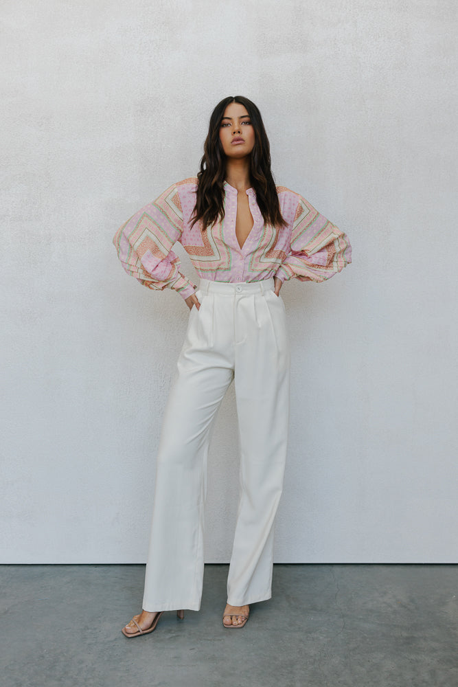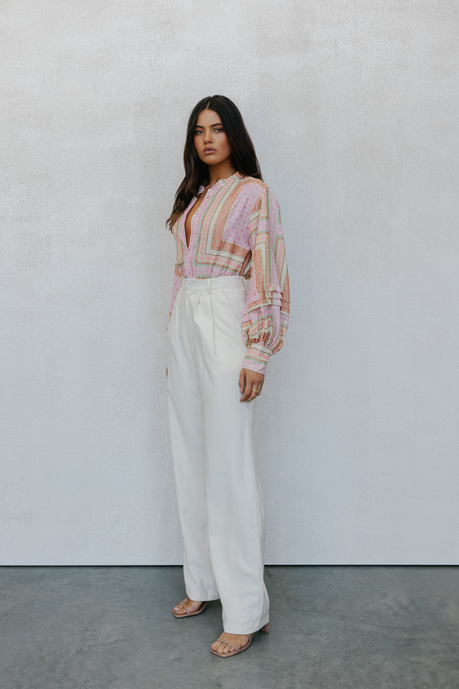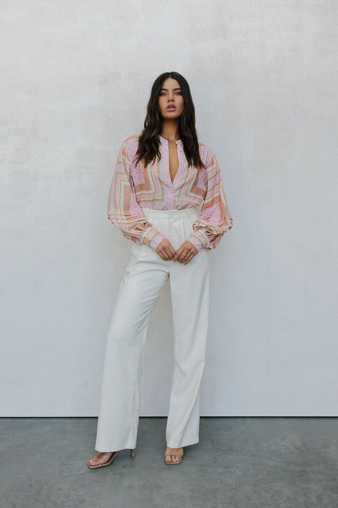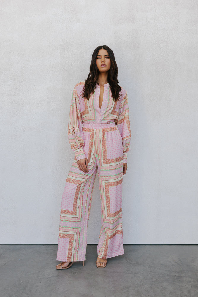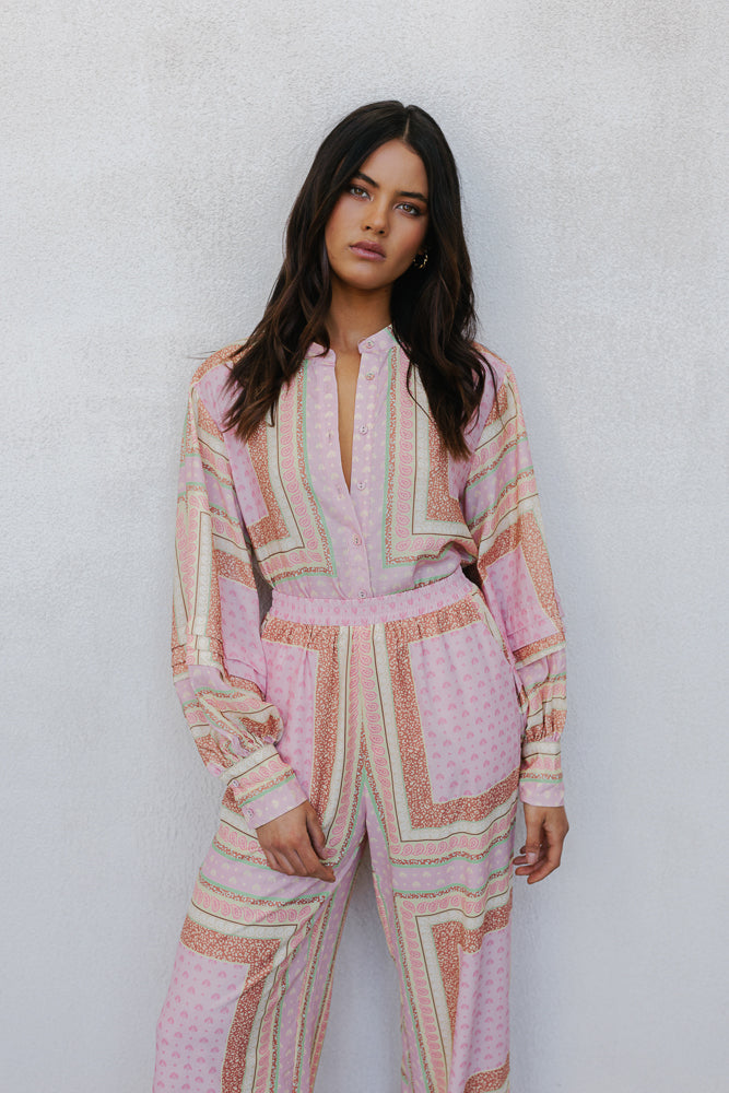 Chicago Billowed Shirt - Pink Tile Print
