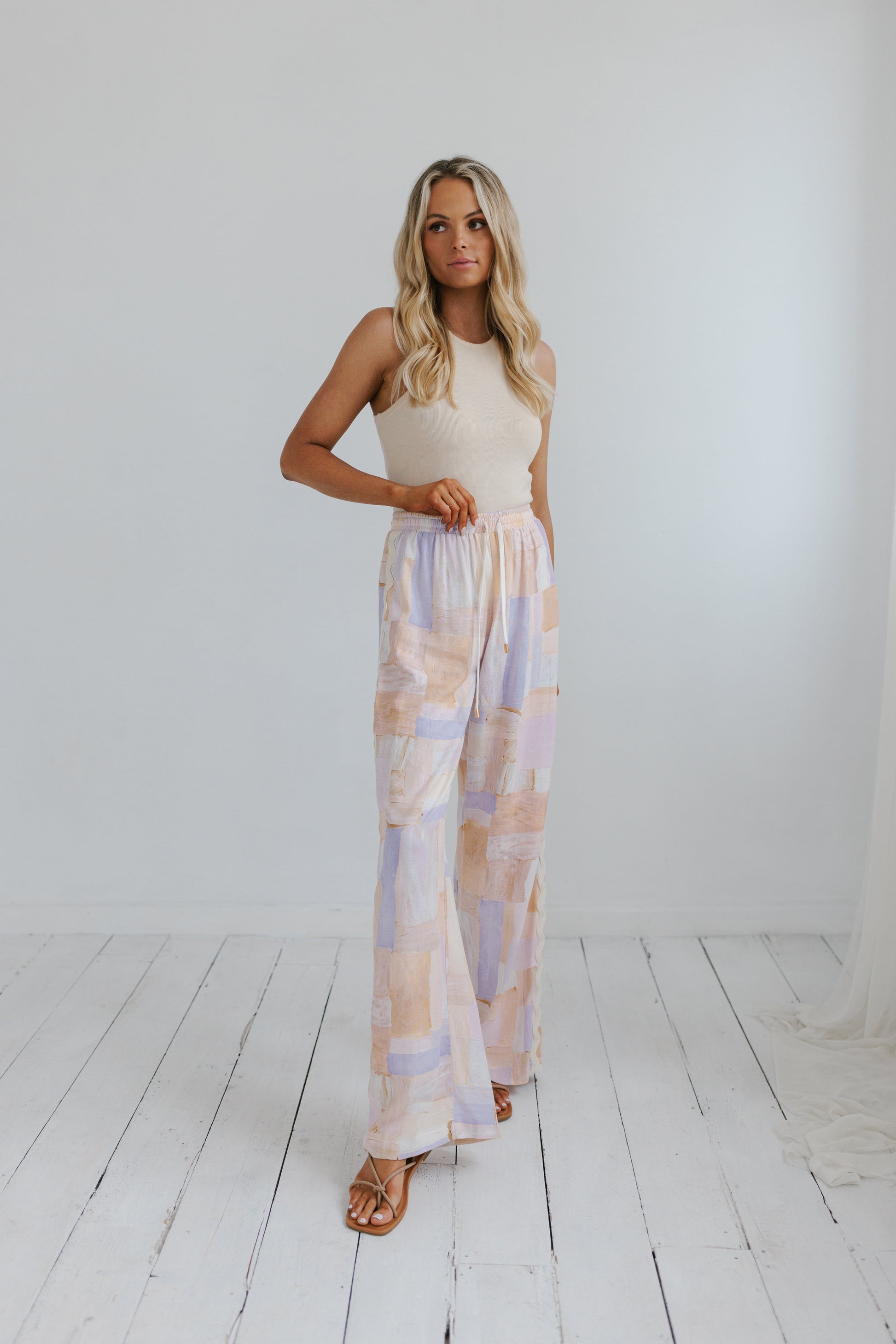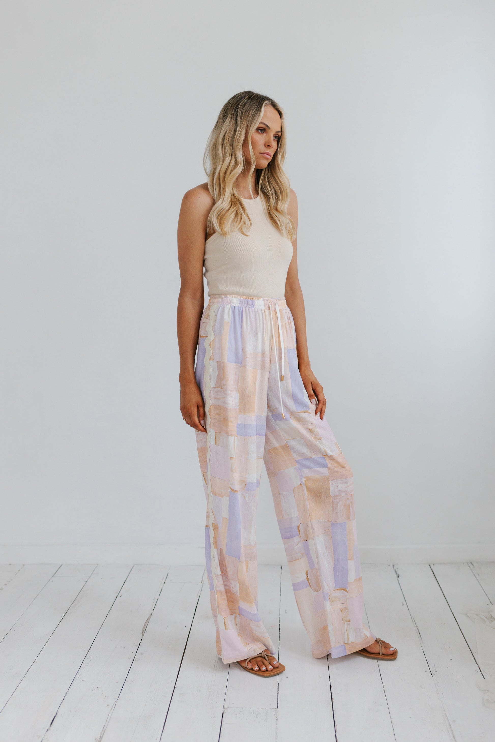 Meet our Citta Pants by BAIA. Her effortless silhouette showcases an exclusive pastel artist print with natural scallop trims, offering both comfort + style. Perfect for a casual yet polished look, we love paired as a set with our Lilah Shirt.