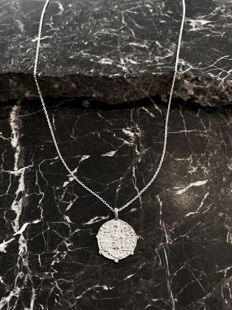 Part of our Lustre & Sage collection, our Coin Charm Necklace is a dainty & timeless sterling silver piece. A classic silver necklace perfect for everyday wear.