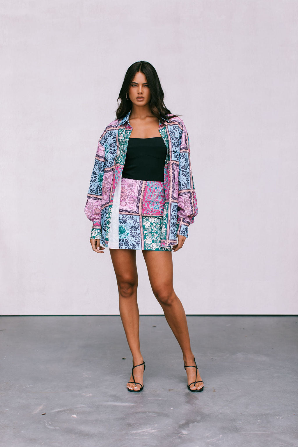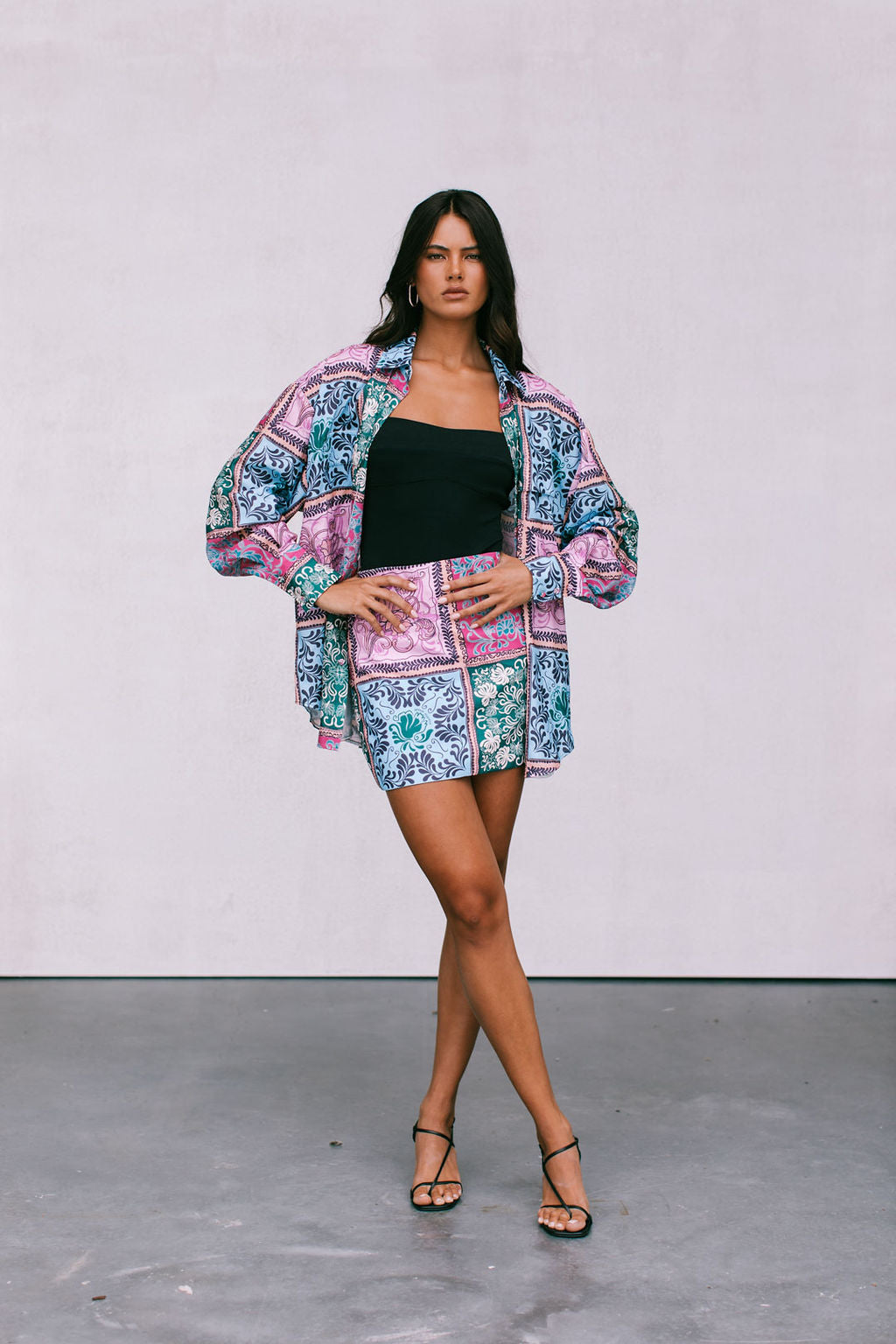 Meet our Poet Skirt, the latest from Zella The Label. This bold mini boasts a stunning water colour print in lilac, green, blue, pink + peach tones. Her classic silhouette offers a chic yet versatile style.