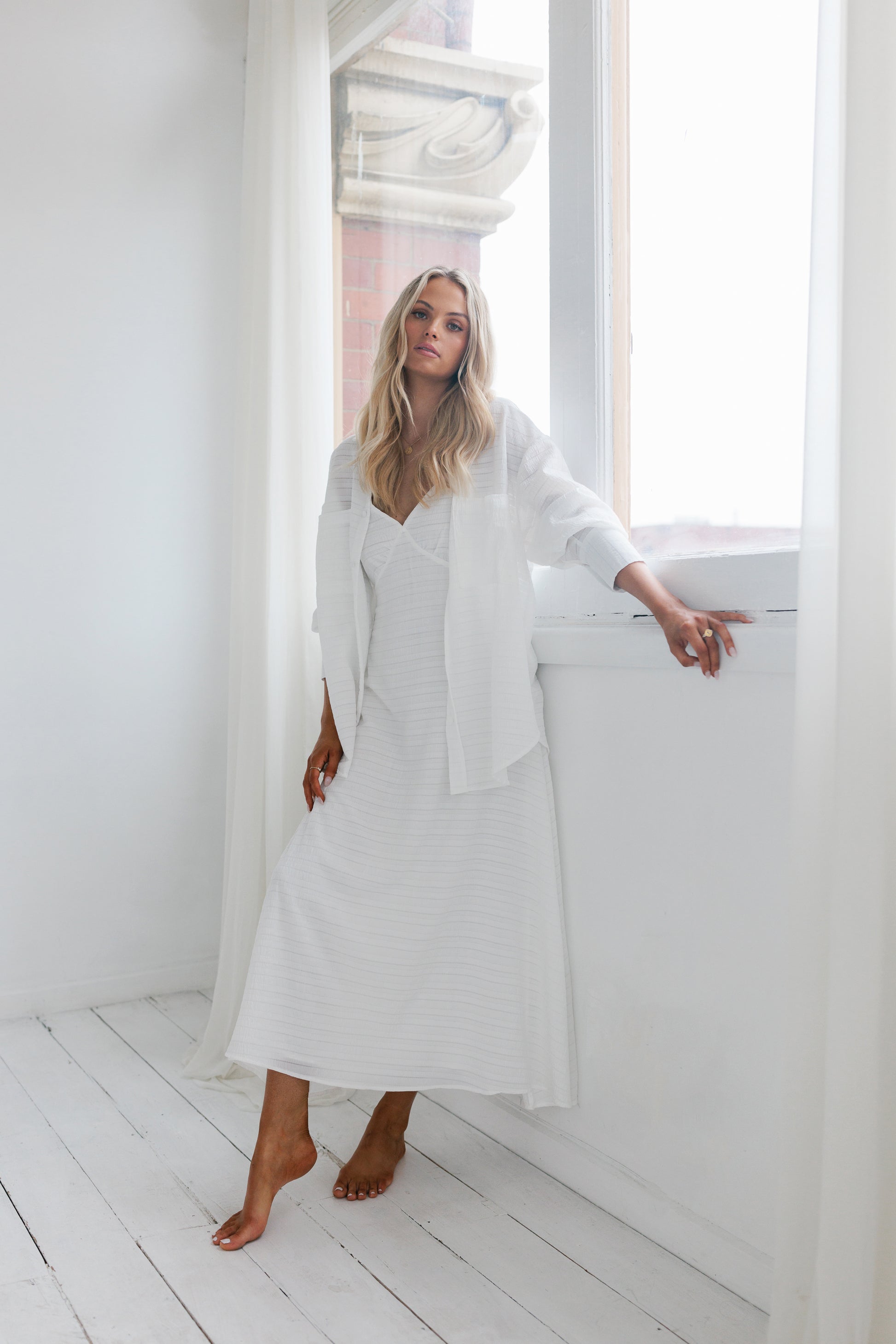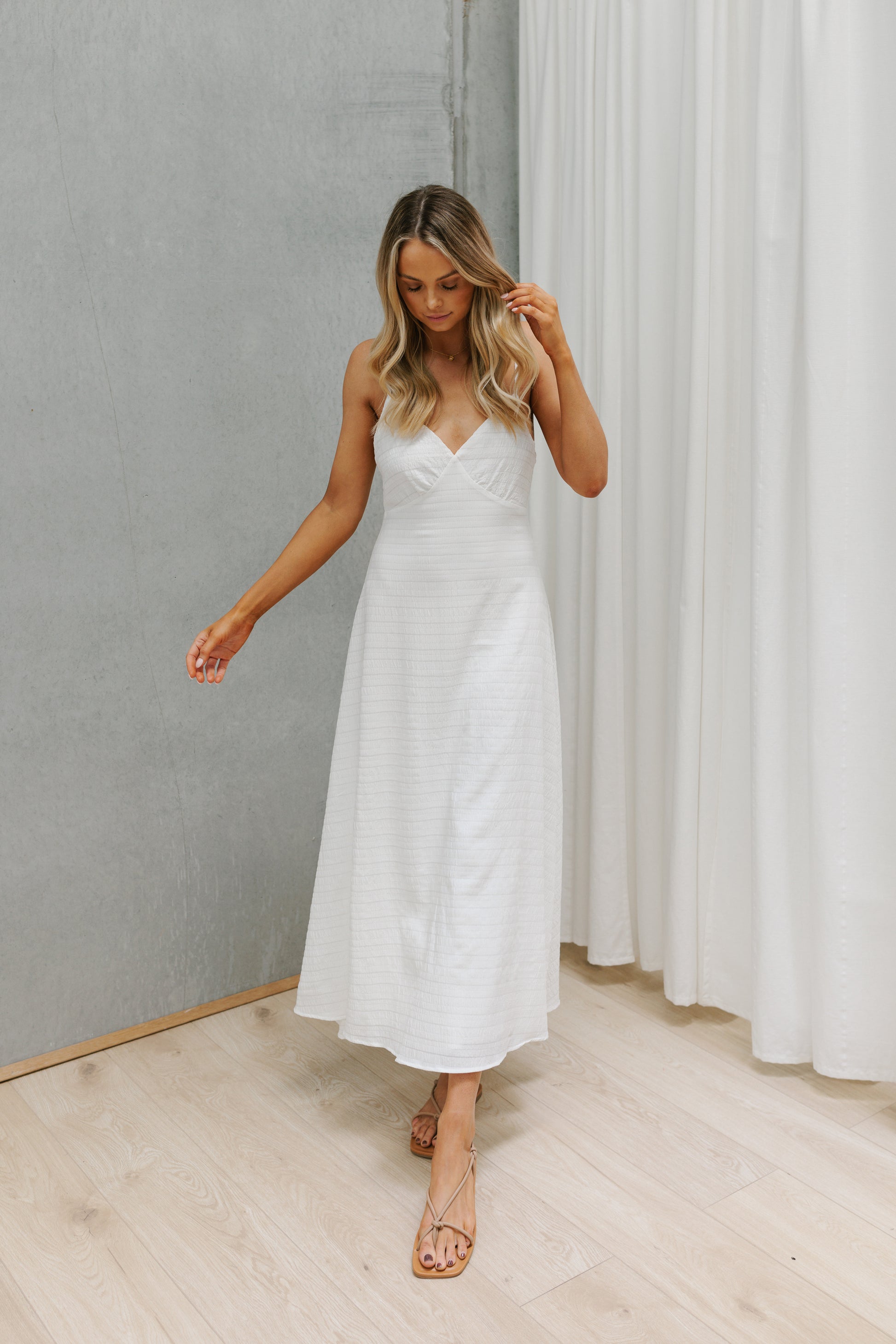 Our Hyacinth Maxi Dress by BAIA offers an enchanting + exclusive design that will elevate your style to new heights. A flattering + stunningly textured white maxi, she evokes timeless style to captivate at any occasion.