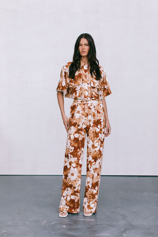 Turn heads in our Esimio Cropped Shirt by BAIA, a cropped floral top for the modern girl. Boasting a warm neutral floral print + delicate scallop embroidery, this relaxed top pairs perfectly with our Sempre Pants for a coordinated set.