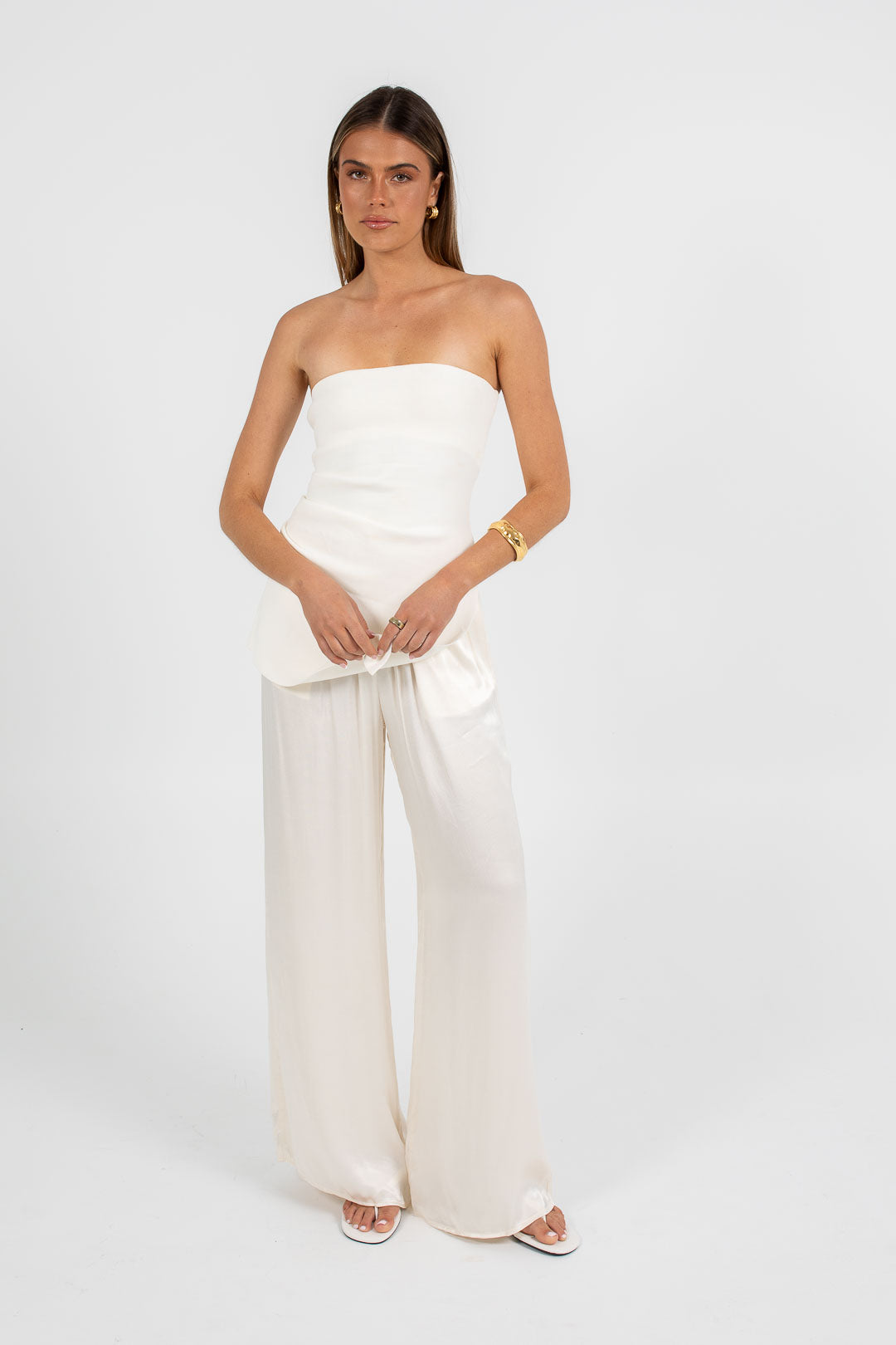 Our Eve Relaxed Pants by BAIA, offer a classic straight-leg pant crafted in a luxe, classic cream satin. With an effortless silhouette, they’re the ultimate staple for elevated dressing. Style with our matching Francesca Shirt for a refined set.