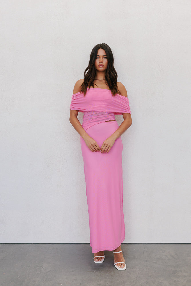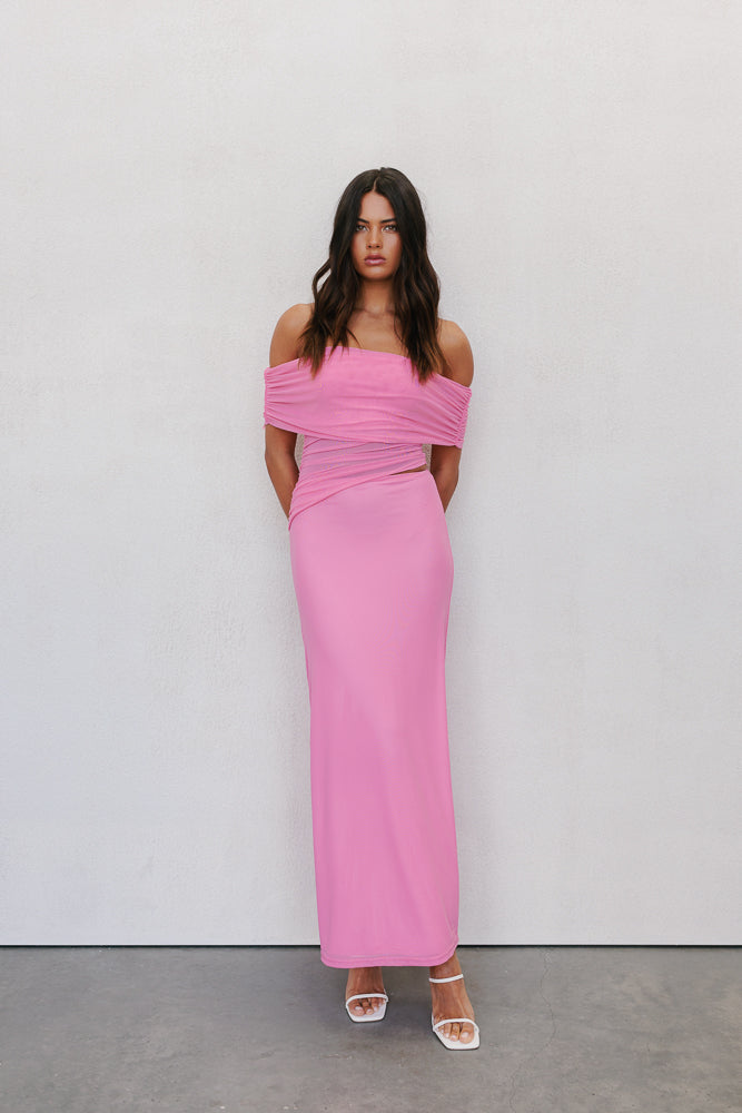 Fiora Maxi Dress - Pink Mesh