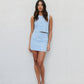 Classic cornflower blue mini skirt with buttons + pocket details to front. Style separately or as a set with the matching Daya Top.