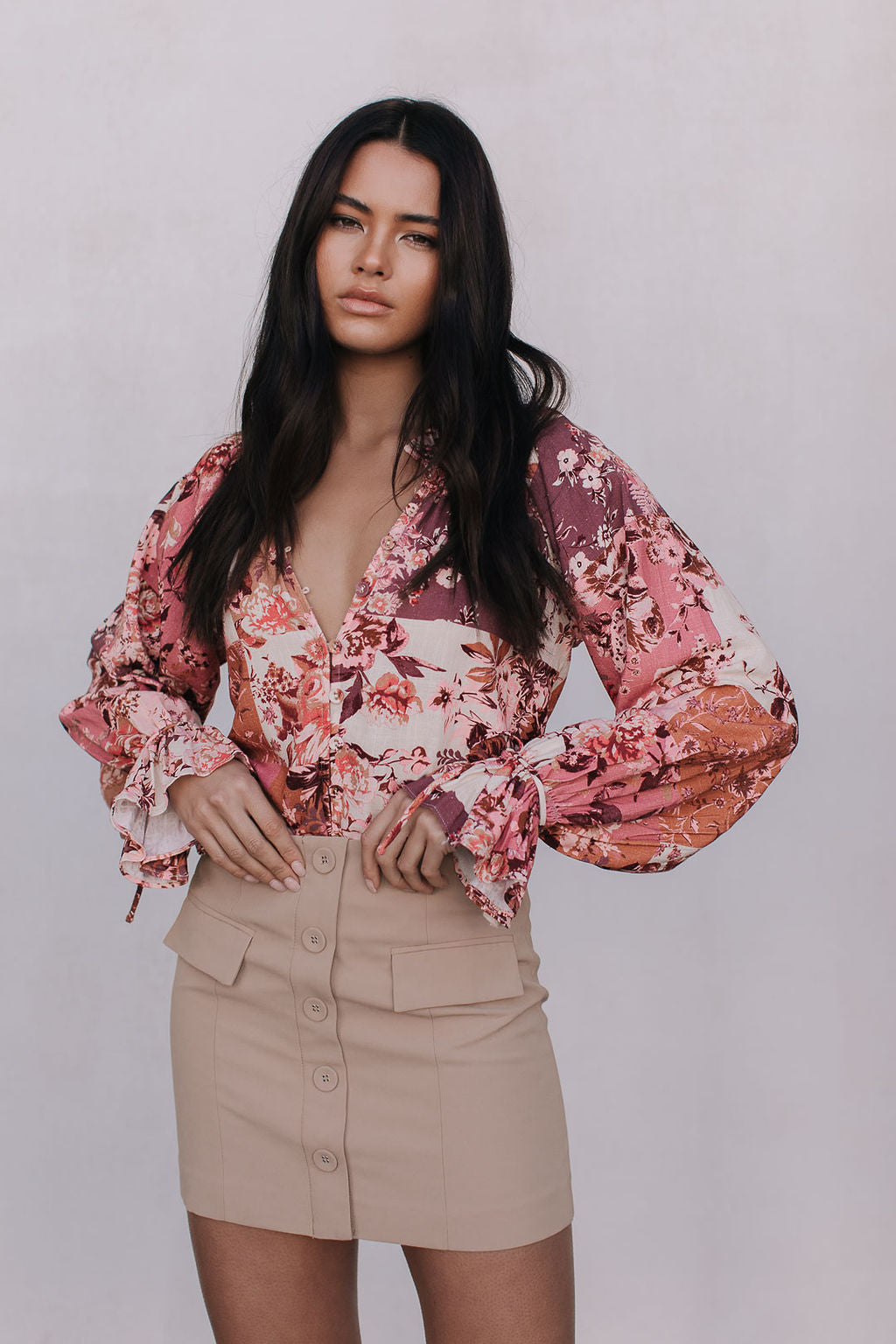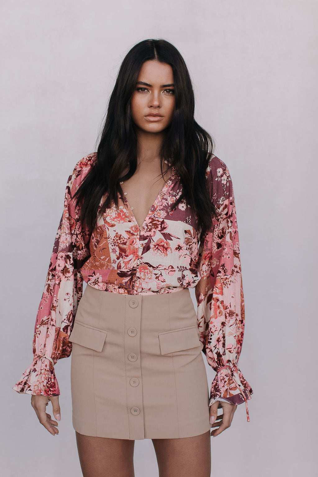 Elevate your everyday or night-out looks in our versatile Haider Mini Skirt. Her flattering silhouette boasts a tailored fit, with chic buttons + faux pockets. Exclusive to MMB, style perfectly as a set with our matching Jovie Cropped Jacket.