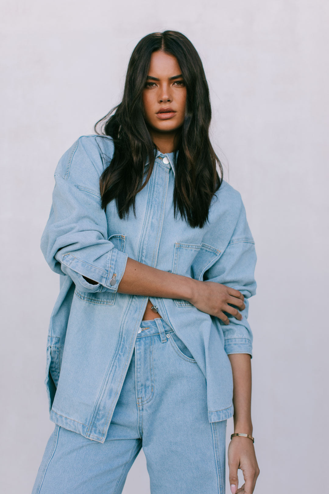 Our Ilou Denim Shirt in Light Wash Blue is a relaxed-fit overshirt by ZYME, exclusive to MMB. Made in premium soft-feel cotton denim, add an extra layer to your outfit or style with our Janey Jeans or Erin Skirt for a laidback, double denim look.