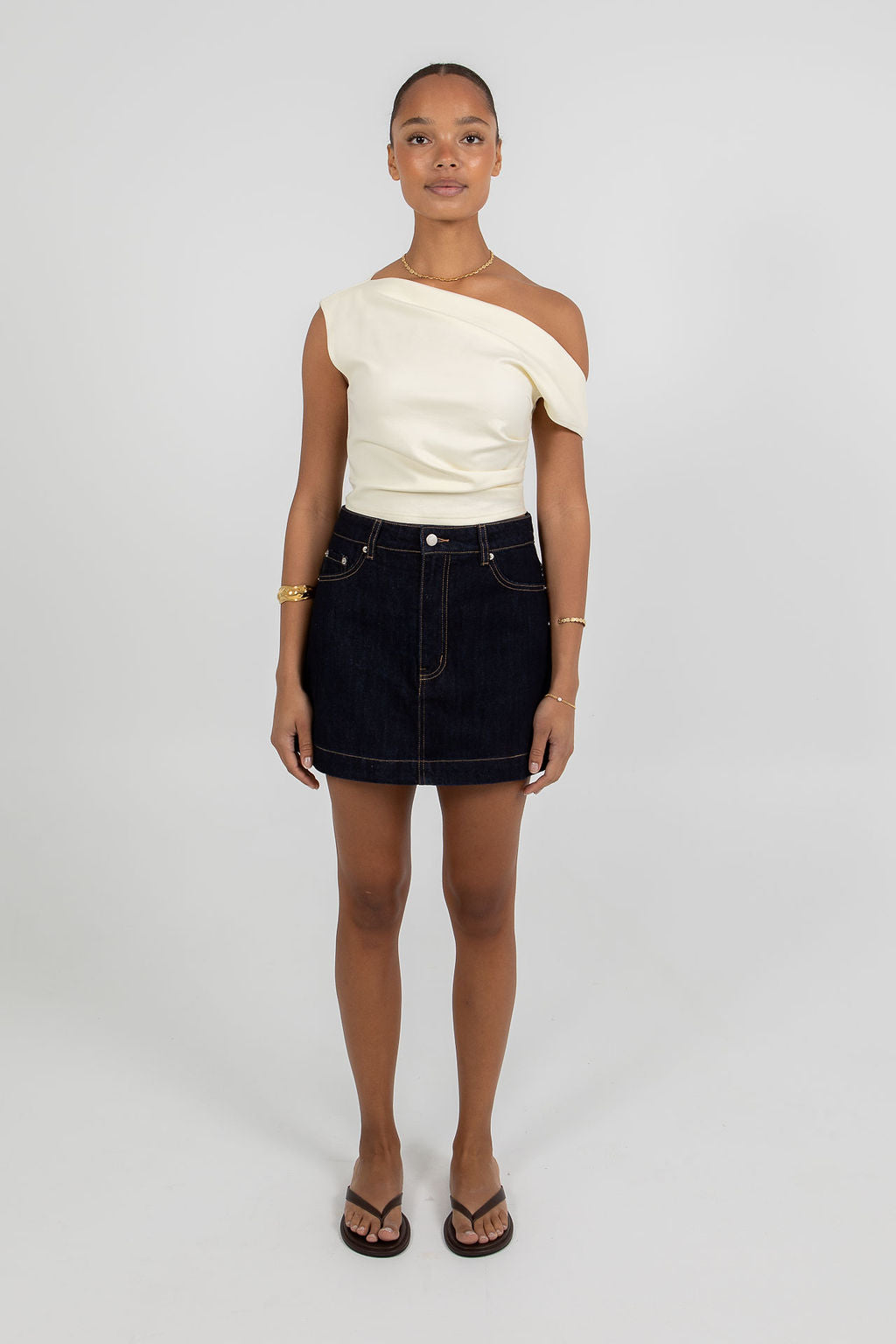 The Jacinta Top features an asymmetrical neckline and flattering side rouching. Waist length with a comfortable stretch fit, it’s the perfect statement piece for effortless day-to-night styling.