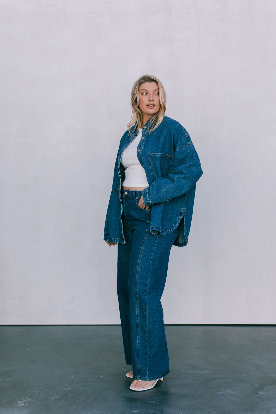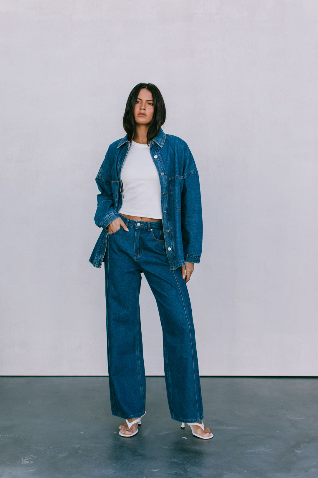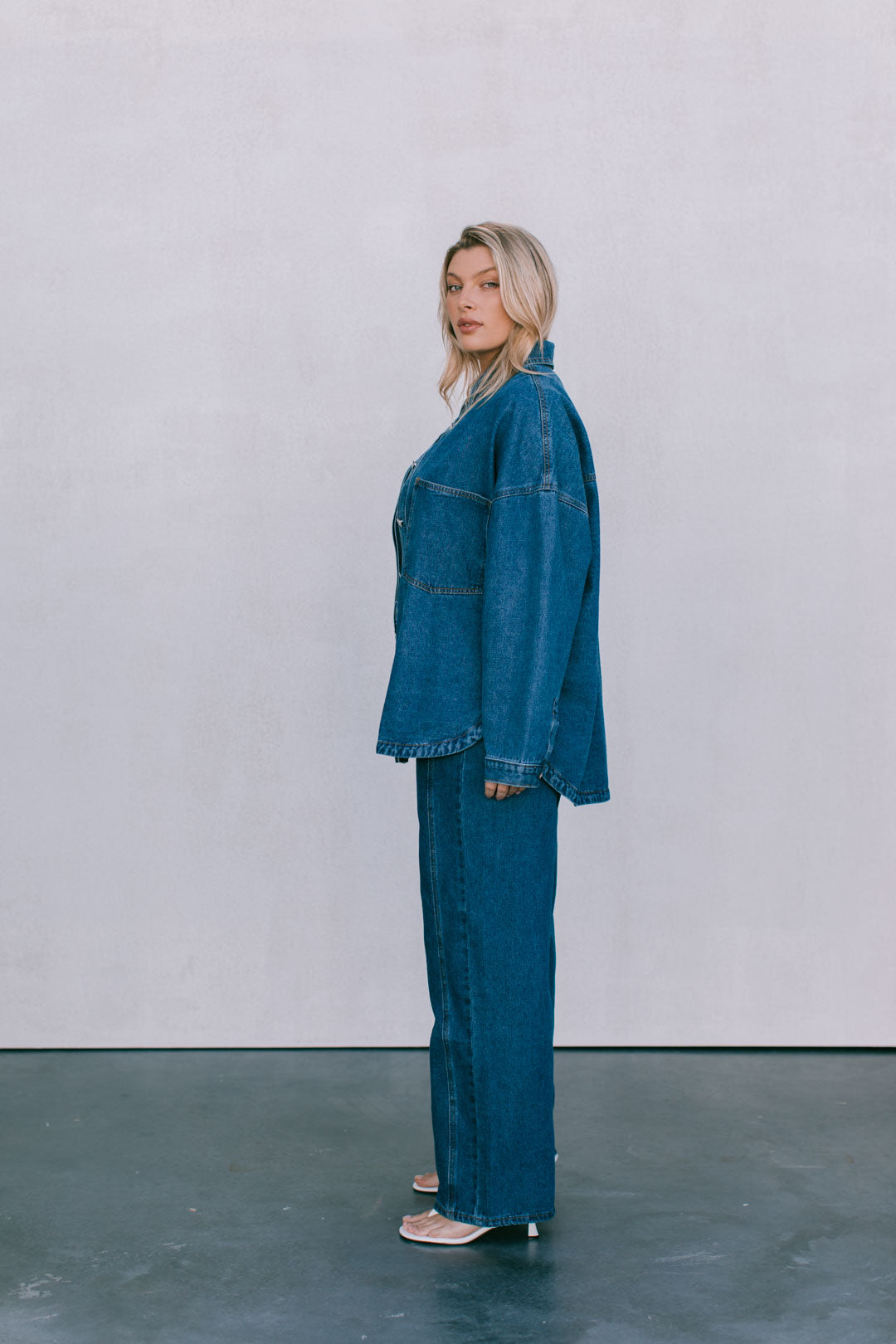 Our exclusive Janey Jeans by ZYME Denim offer an ultra baggy, wide-leg silhouette for the modern woman. Style with our Ilou Denim Shirt for a double denim look. Elevate with heels or keep it casual, she is your new go-to jean from day-to-night.