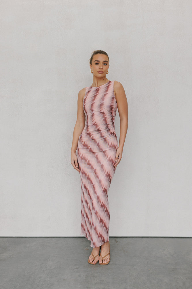 Kayla Maxi Dress - Berry Watercolour Mesh