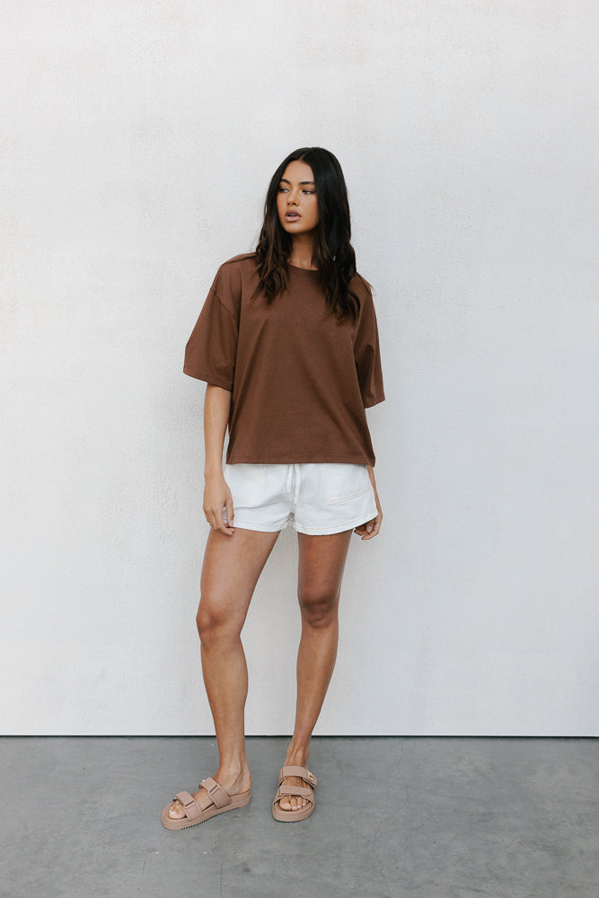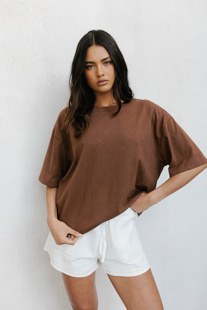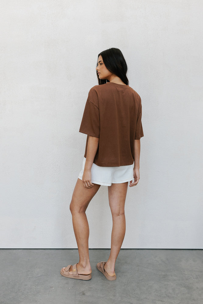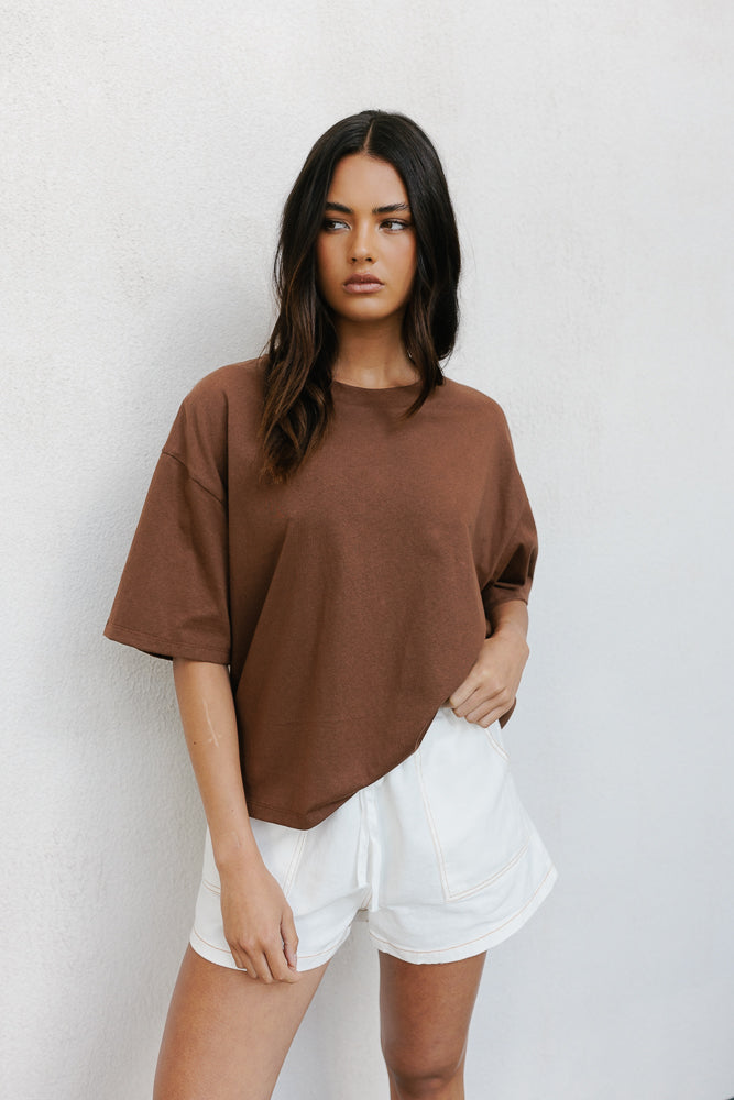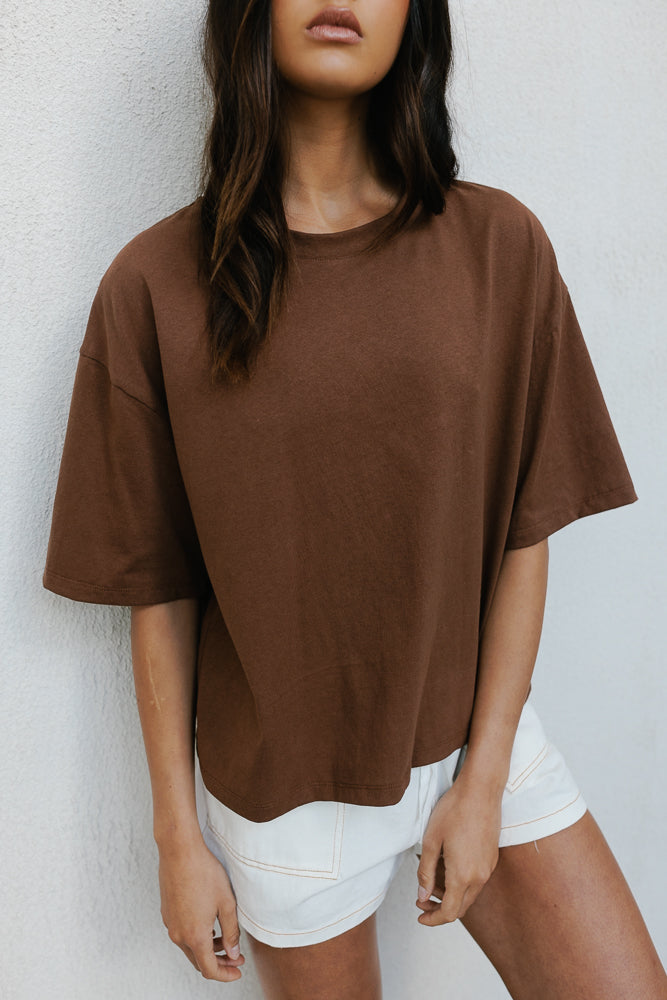 Our Kell T-shirt is a capsule wardrobe staple. This go-to features a classic round neckline + ultra relaxed, boxy silhouette. Blend comfort + style, she is perfect for everyday wear + will style into your wardrobe with ease.