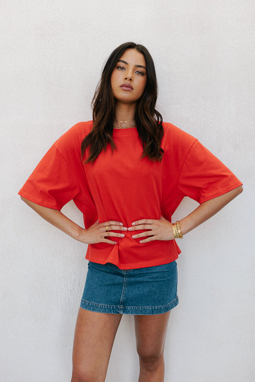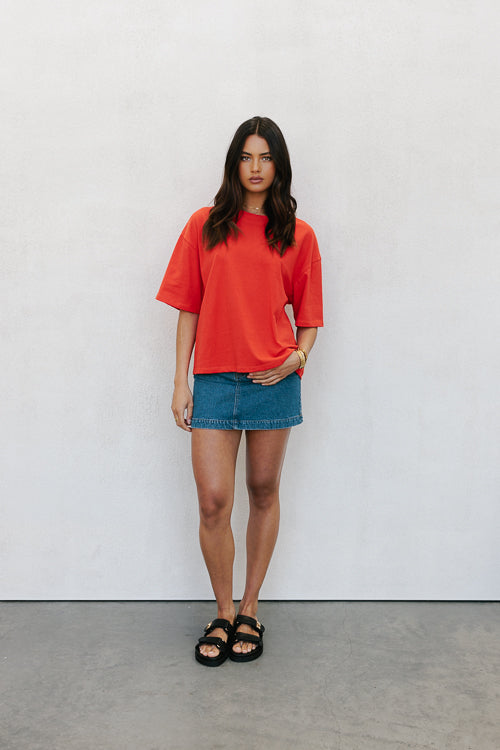 Our Kell T-shirt is a capsule wardrobe staple. This go-to features a classic round neckline + ultra relaxed, boxy silhouette. Blend comfort + style, she is perfect for everyday wear + will style into your wardrobe with ease.