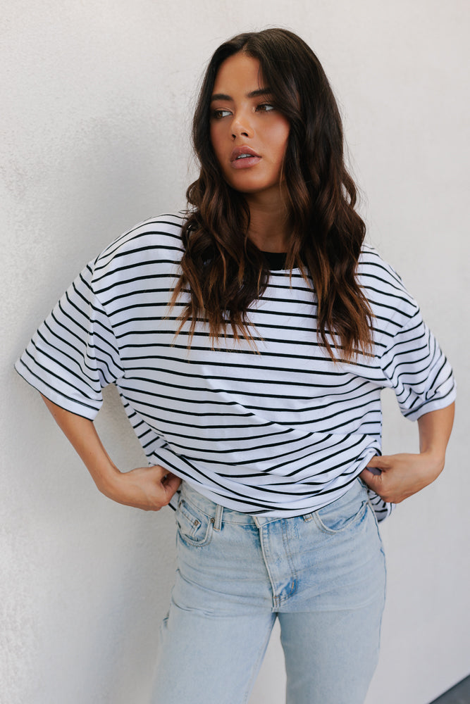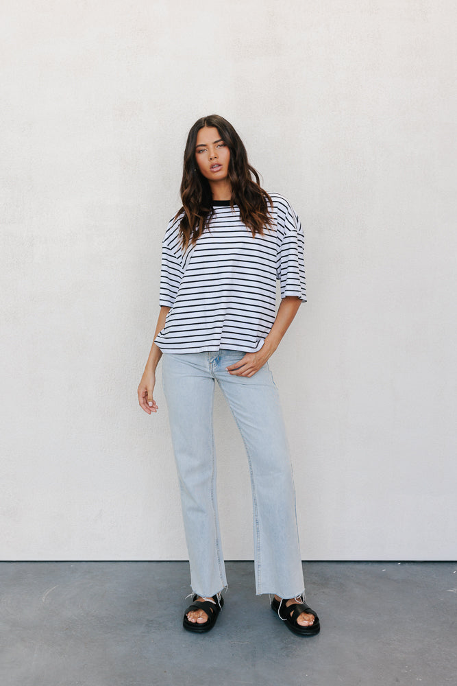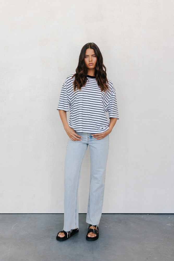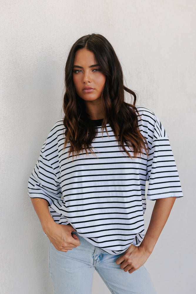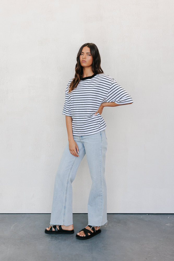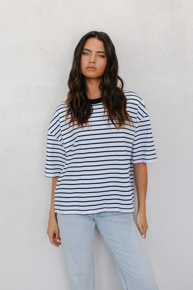Kell Tee - White/Black Stripe