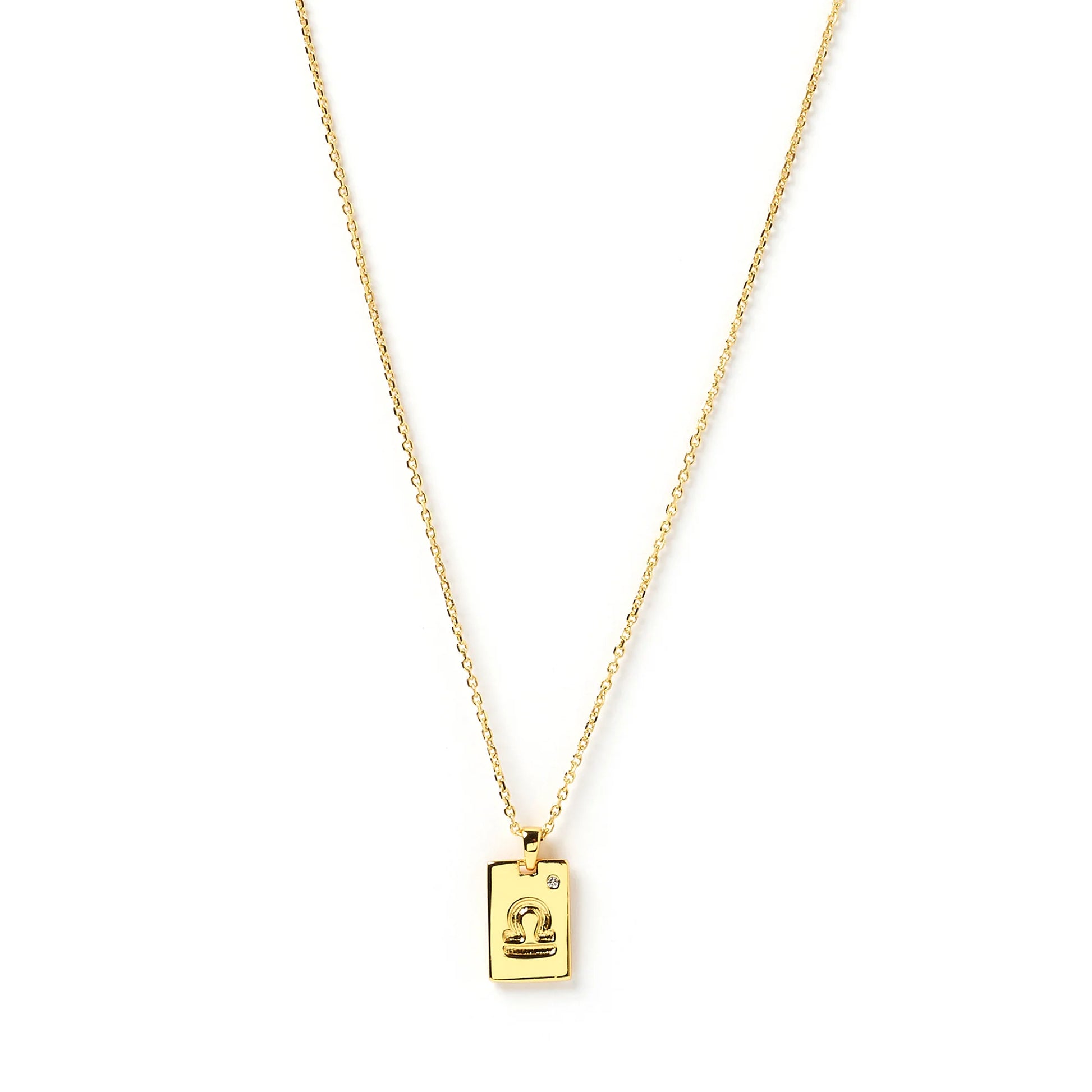 A sweet zodiac tag necklace for our Libra's out there (September 23 - October 22). The perfect personalized necklace featuring a clean star sign design, finished off with a tiny zircon stone for the full star effect.