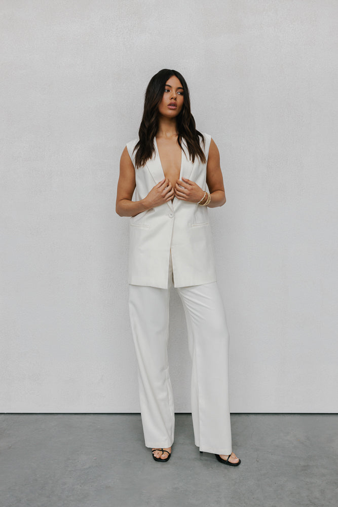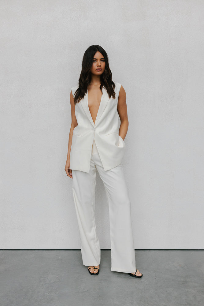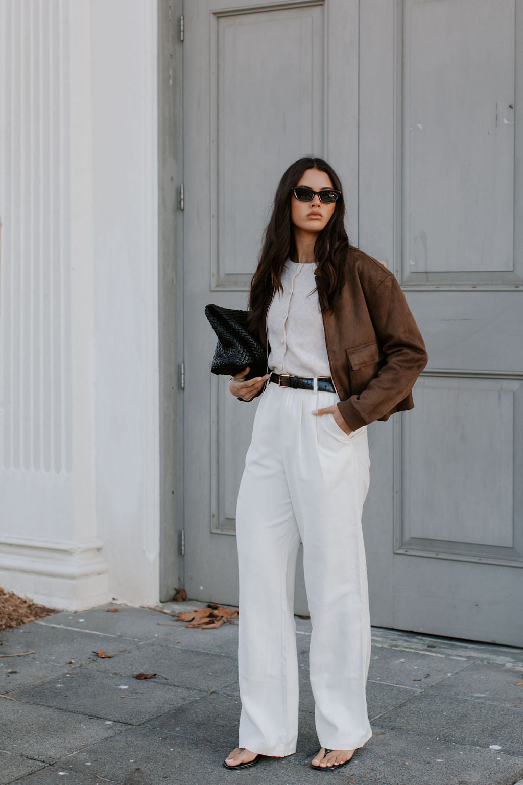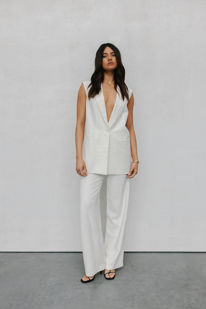 Our Mayda Pants offer classic tailoring in a modern fit. Perfect for workwear or weekends, her relaxed silhouette + sleek details, offer a versatile wardrobe staple piece. We love styled with our Uerella Vest for a power suit outfit.