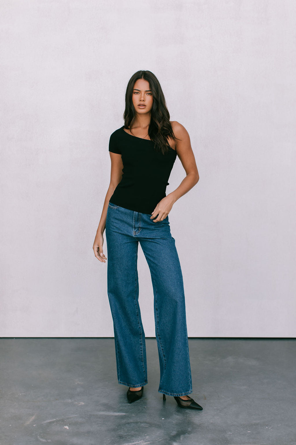 Meet our Nilla Knit Top, a modern black knit with modern edge. With an asymmetrical one-shoulder design, subtle ruching + flattering silhouette, she's a versatile staple perfect for effortless style. Soft, stretchy + chic, she's a must-have.