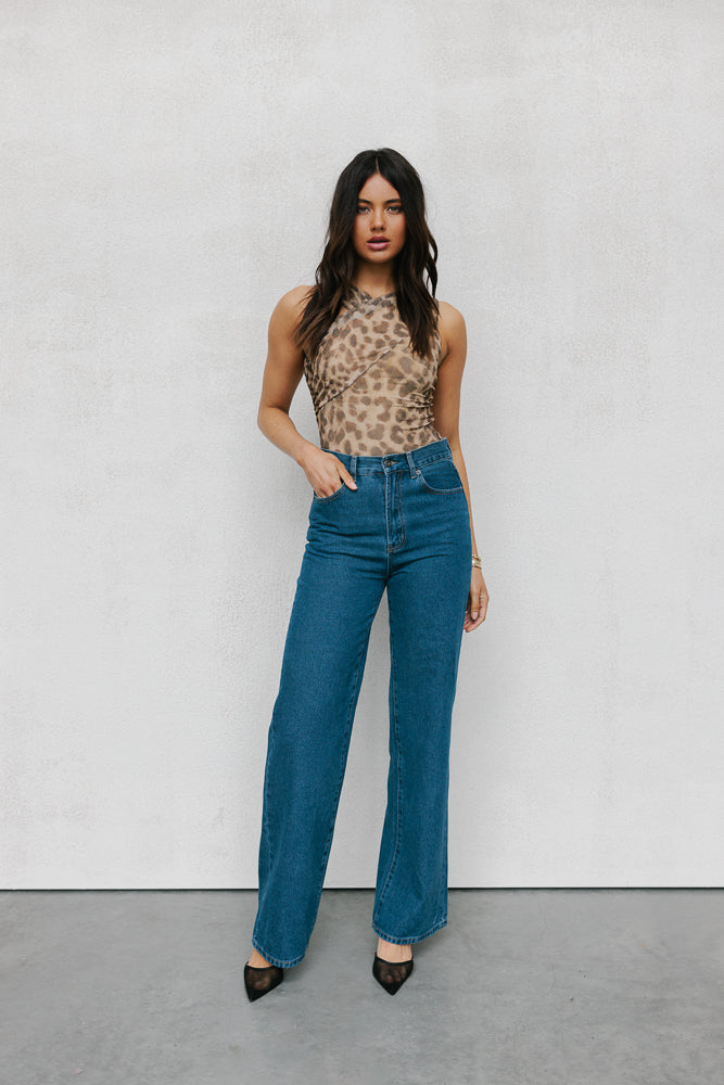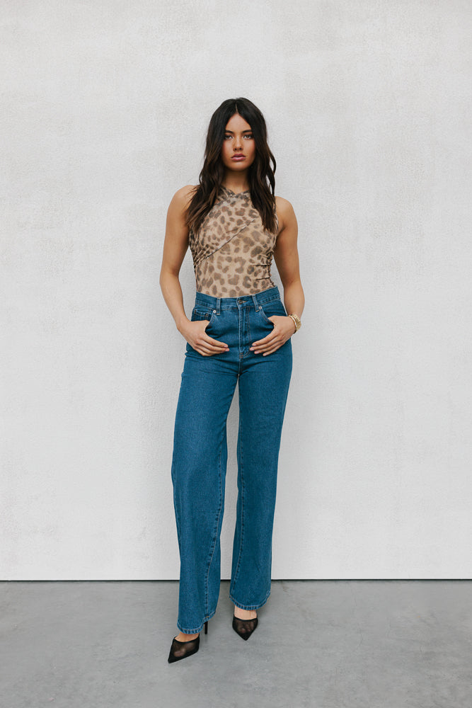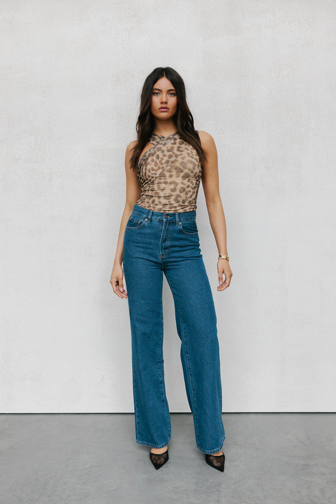 Our Paris Top will make a statement in any setting. Stand out in her bold + eye-catching exclusive leopard printed mesh, with an unique silhouette boasting an asymmetrical ruched neckline Her flirty, fitted silhouette is both stylish + confident.