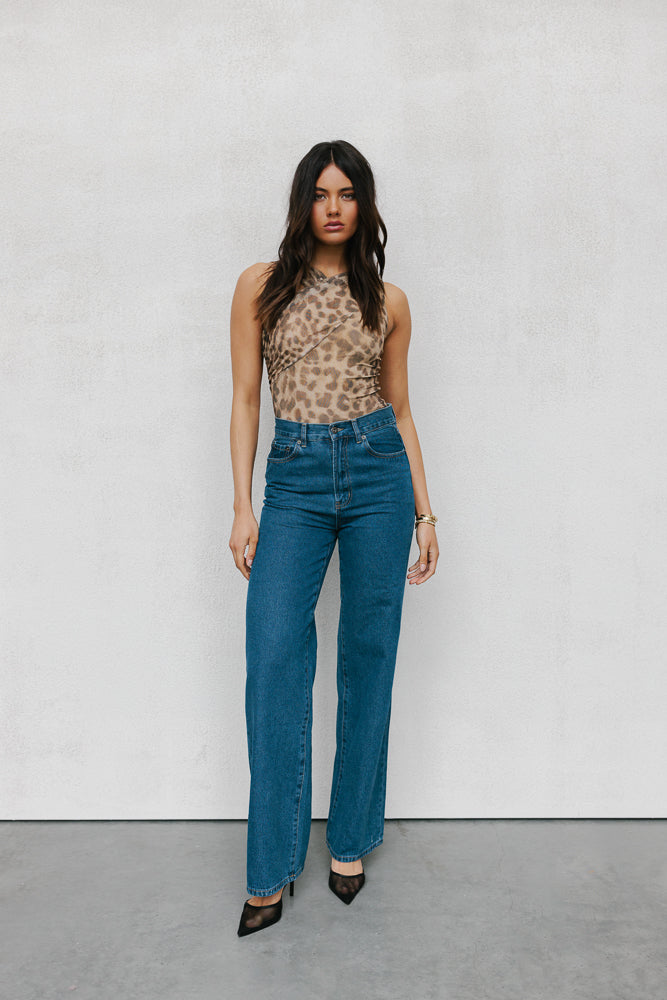 Statement leopard printed mesh tank top