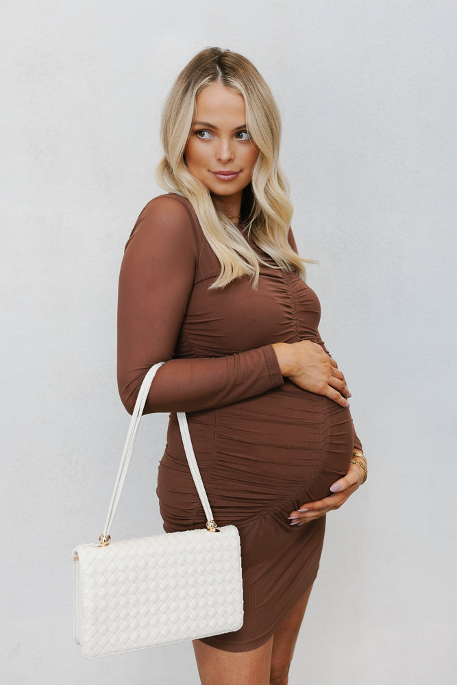 Our alluring Phoebe Dress offers a captivating mini sure to turn heads at any event. With her mini length + round neckline, she offers a chic + contemporary silhouette with alluring mesh + ruching details. A true statement piece for your wardrobe.