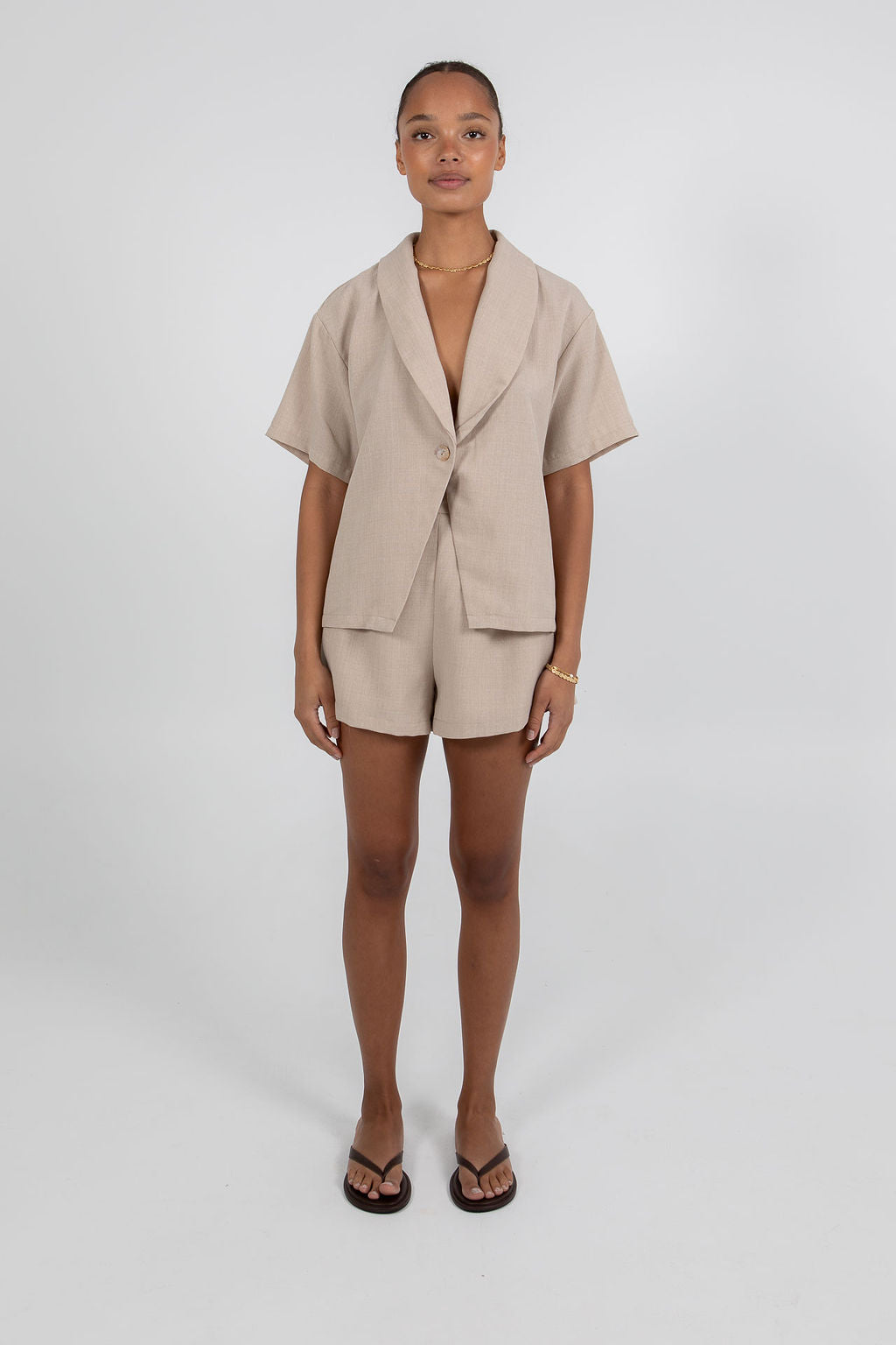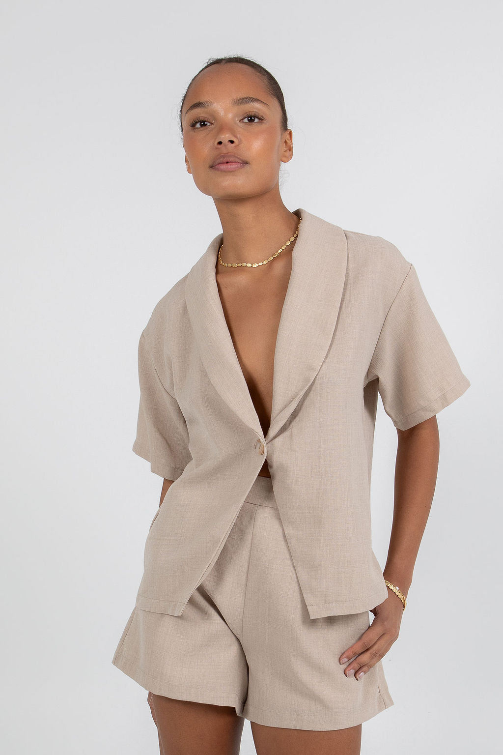 A laid-back yet polished set featuring a relaxed short sleeve shirt and matching shorts. Designed with comfort and versatility in mind, this co-ordinate is perfect for easy everyday wear or styled up for an effortless statement look.