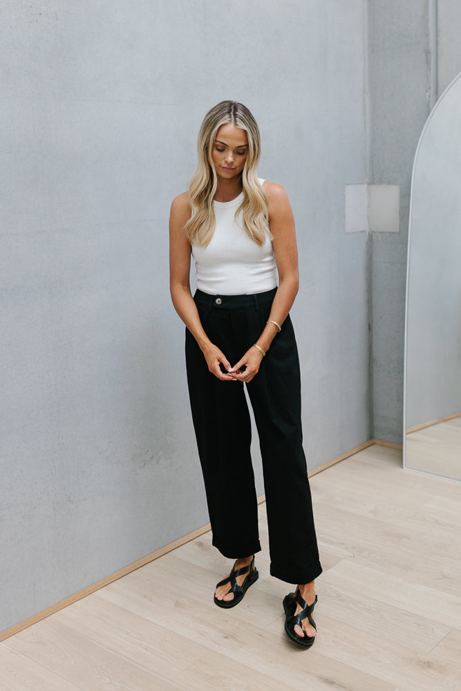 Our Pieta Top is a wardrobe essential that will effortlessly merge comfort + timeless style. Her fitted silhouette with a round neckline + sleeveless design, offers a versatile + chic foundation for various looks.