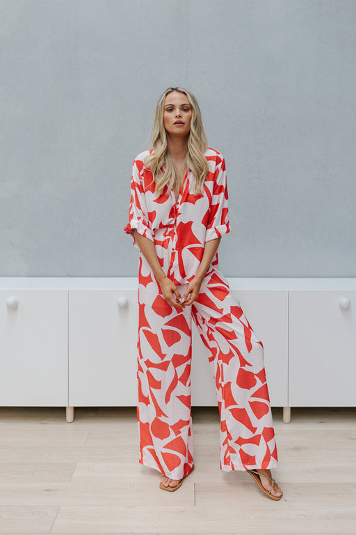 Our Quebec Dress is a mesmerizing mini featuring a captivating geometric red + cream print. Sure to turn heads, this flirty is designed to enhance femininity with her halter neck + daring cut-out feature accentuated with a charming tie detail.
