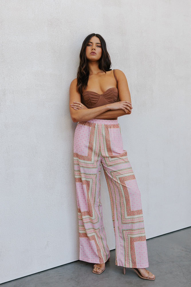 Our Quest Pants offer vibrant addition to your wardrobe, exclusive to MMB by Cinque. These wide leg pants boast a striking tile print in stunning hues, creating a bold + beautiful look. Stand out with every wear.