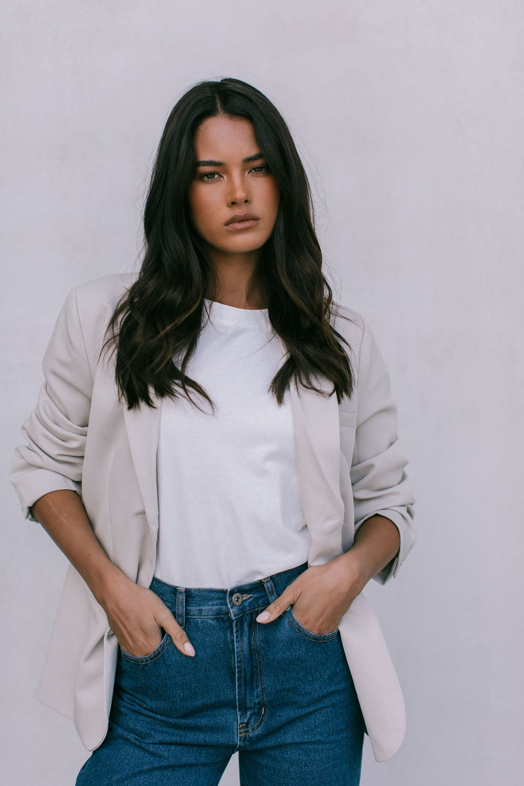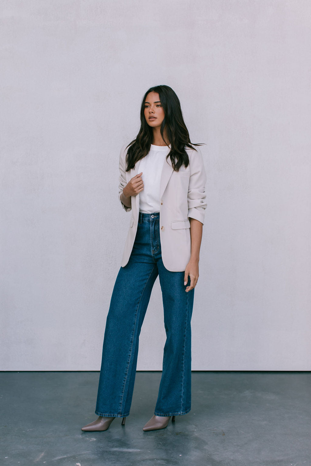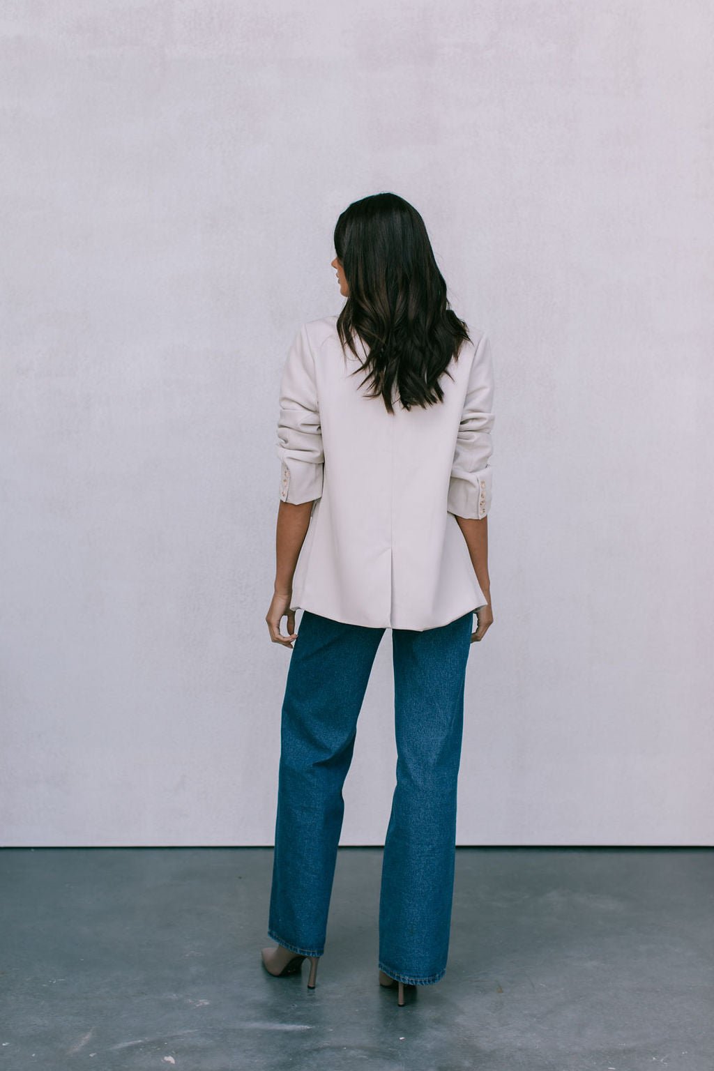 Upgrade your work + weekend wear with our Quinsea Blazer. Designed with a relaxed boyfriend fit, this timeless blazer offers a classic silhouette for styling for both the office + off-duty styling.