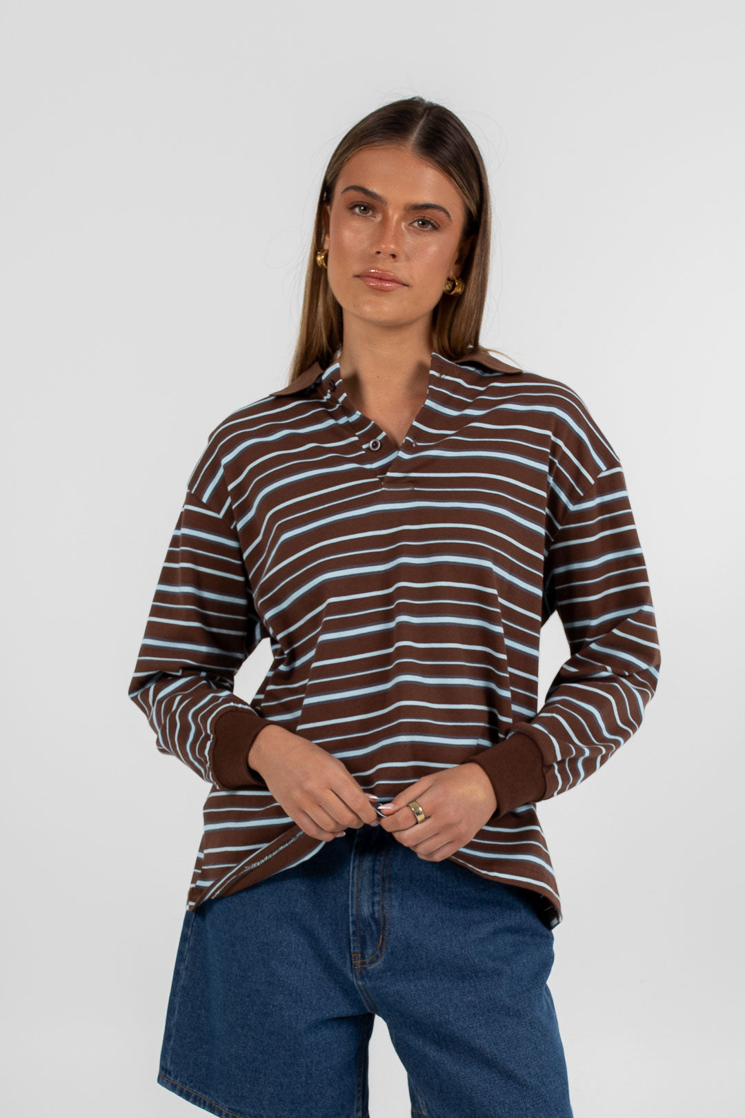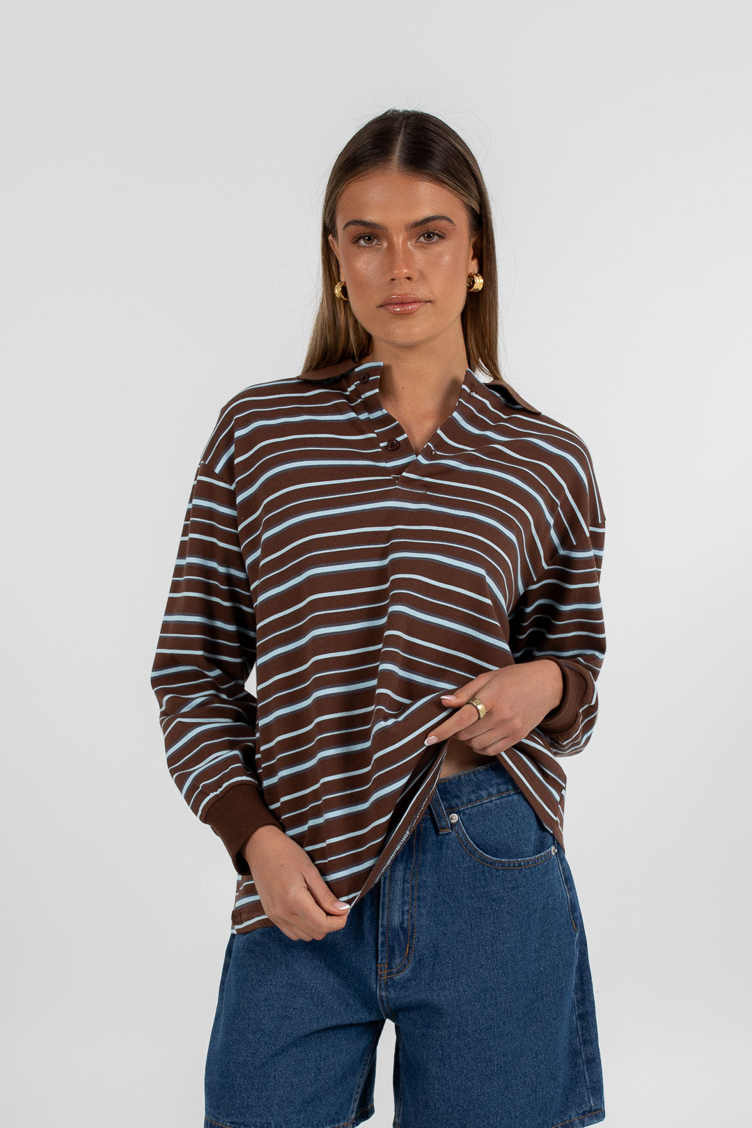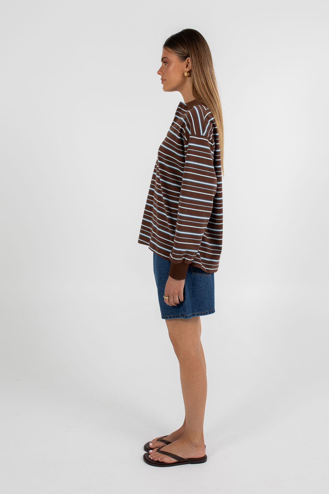 Regan Long-sleeve Top - Chocolate/ Blue Stripe