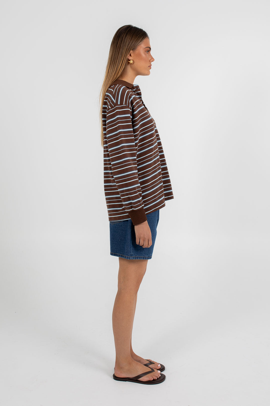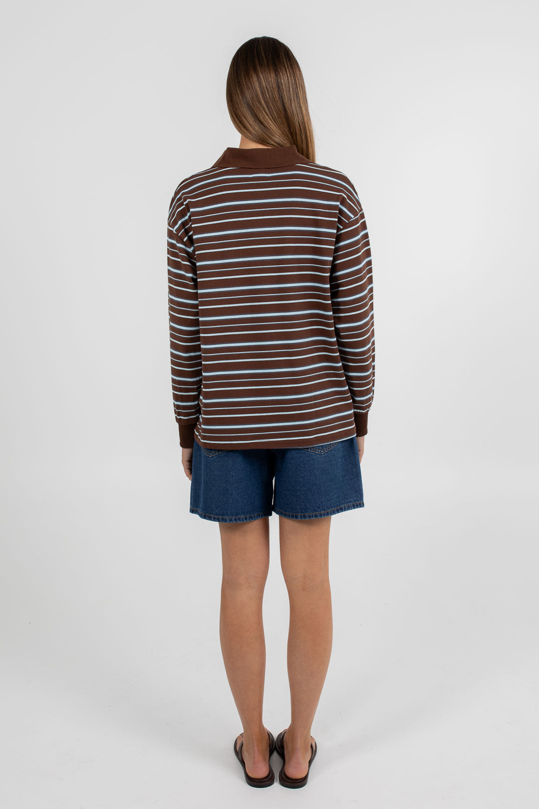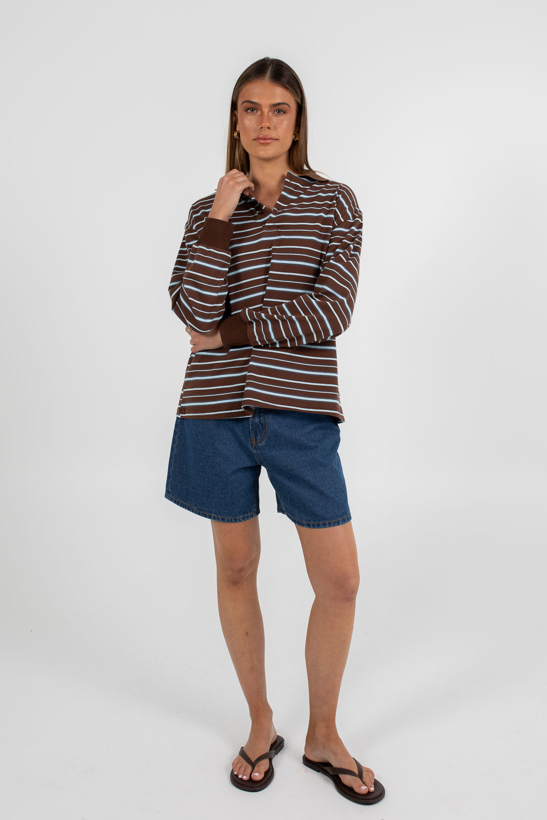 Regan Long-sleeve Top - Chocolate/ Blue Stripe