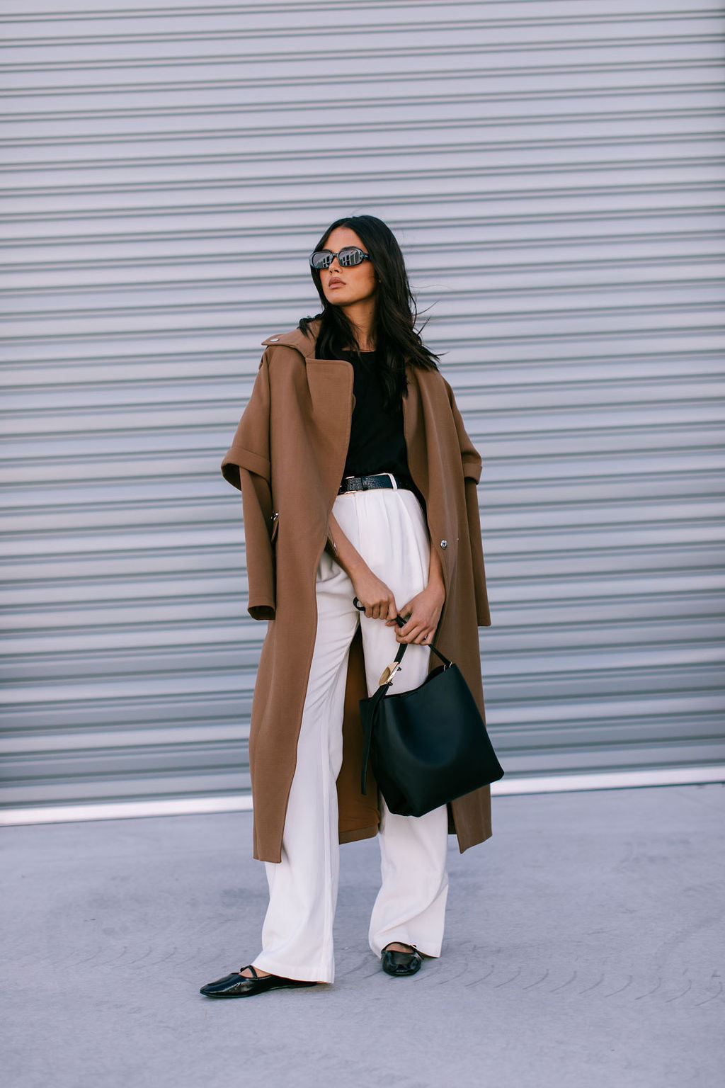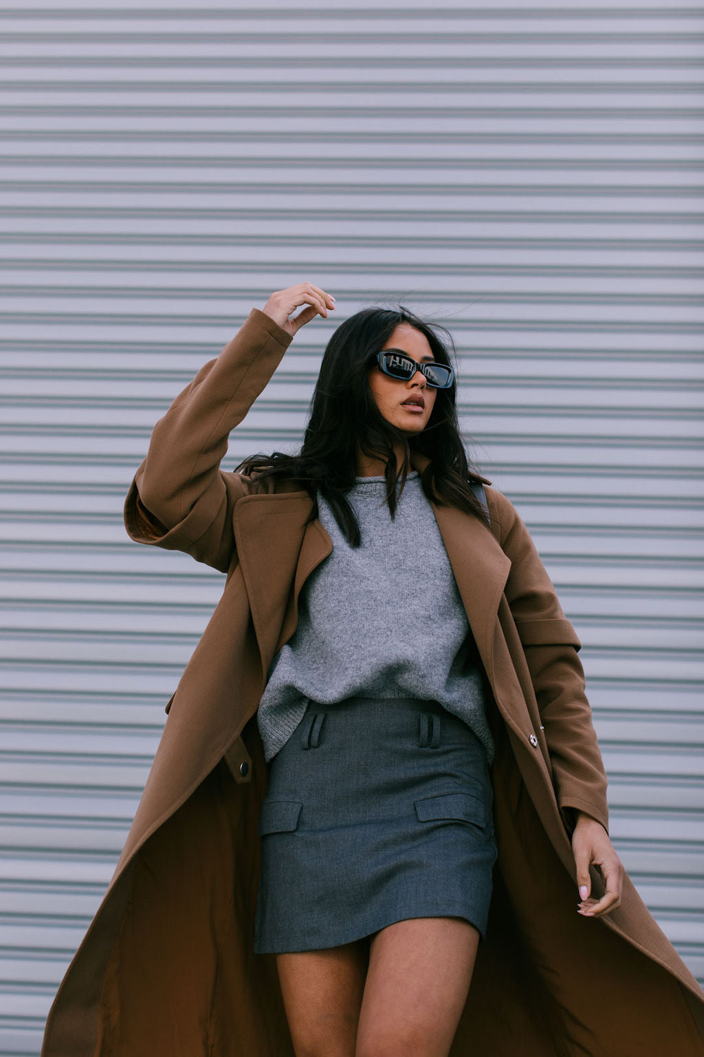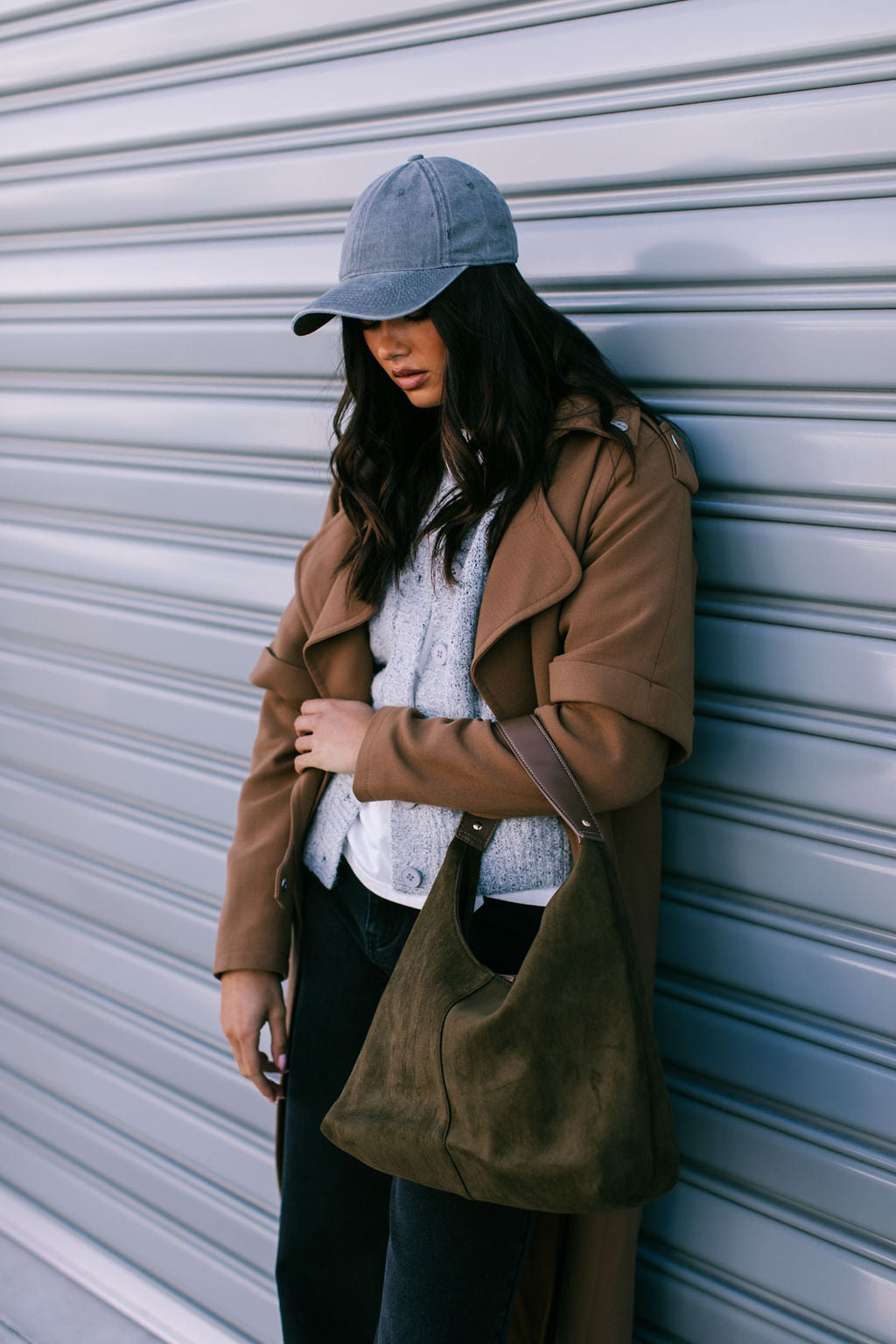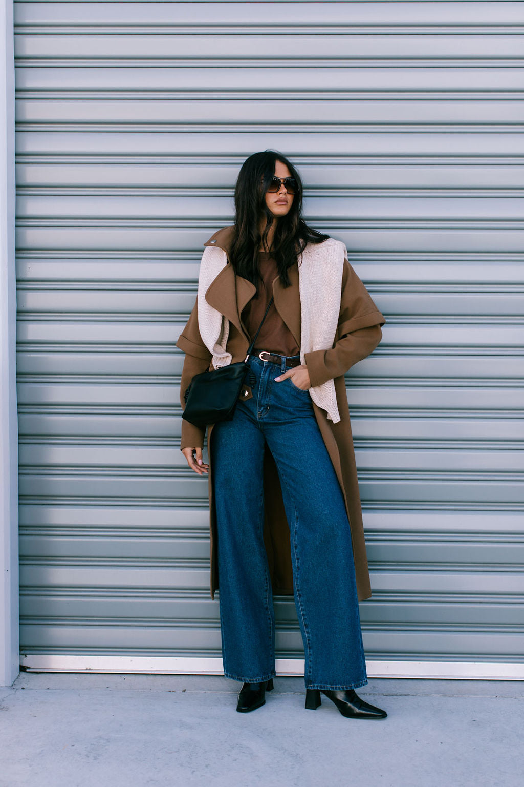 Warm toffee brown trench coat women. Ultra, oversized silhouette.