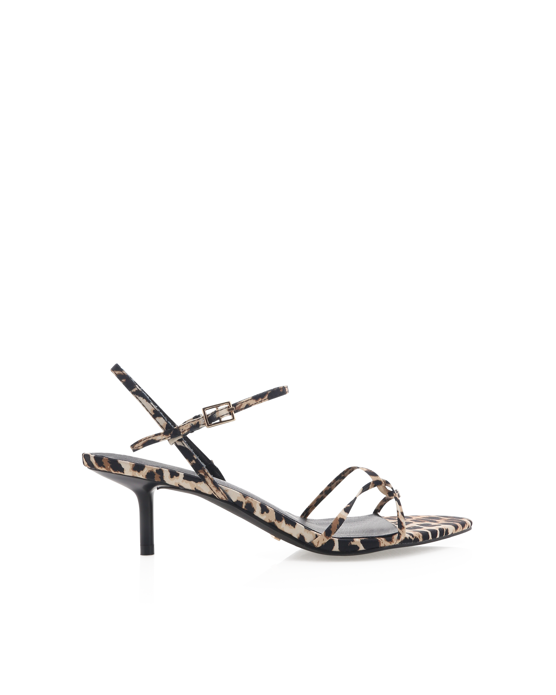 Step into style in Misty. With a low, kicked-in stiletto + open pointed toe, these heels are designed to elevate any look. In a striking on-trend leopard print, make a bold statement. Perfect for nights out, or adding edge to your work wardrobe.