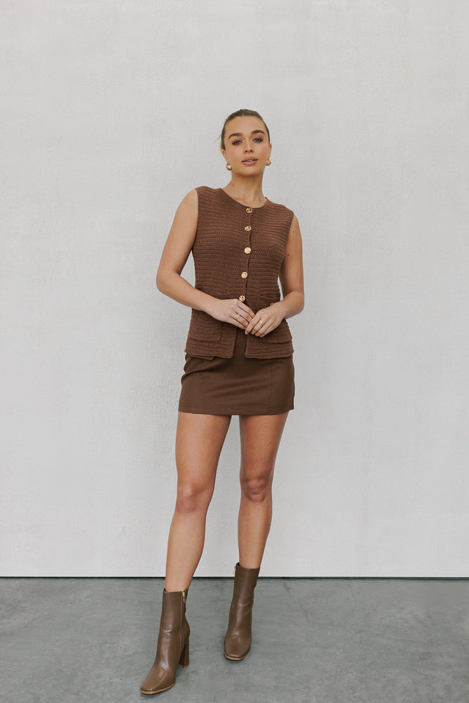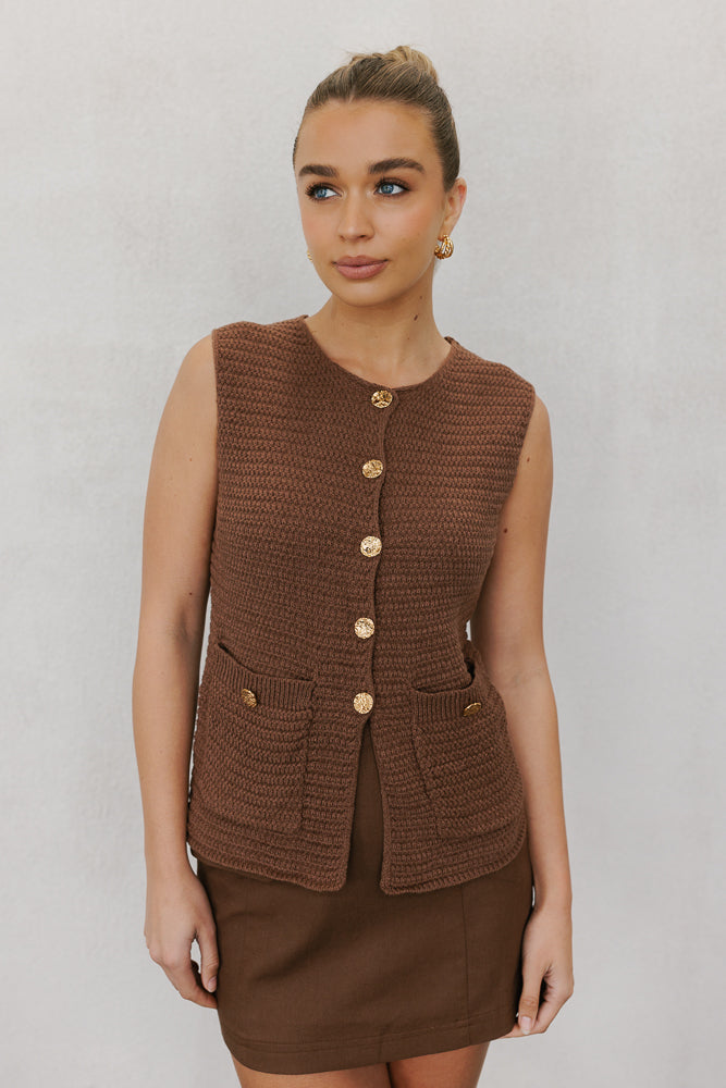 Gorgeous brown knitted vest with feature gold details