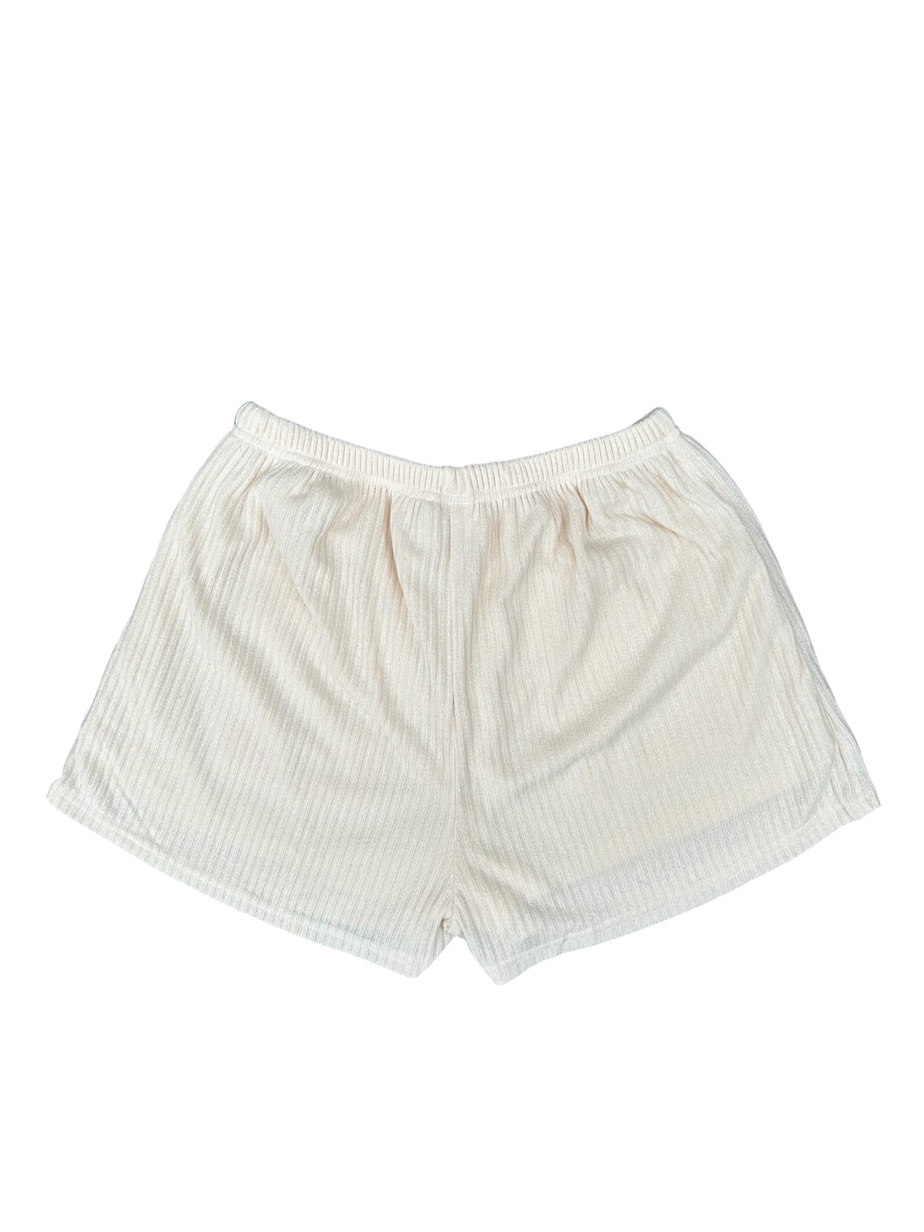 Our Winona Set blends of comfort + effortless style. in a creamy white ribbed knit, this matching t-shirt + shorts set boasts a relaxed, oversized fit, perfect for laid-back days. A classic must-have for chic, off-duty dressing.