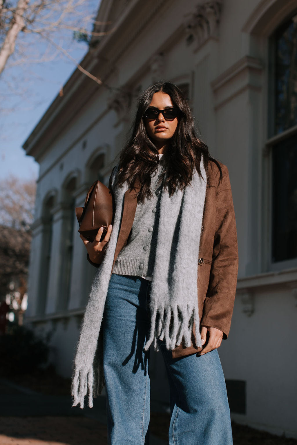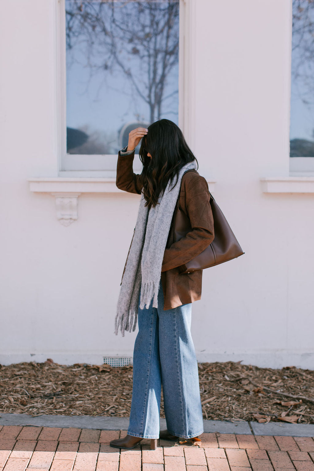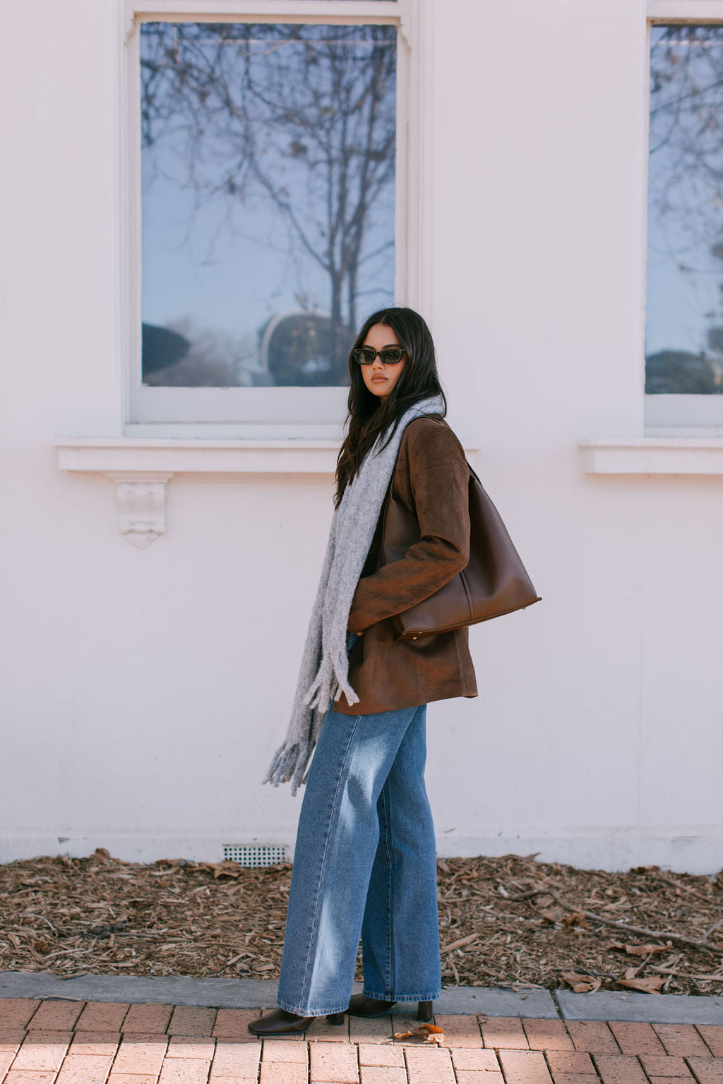 On-trend, timeless chocolate brown oversized blazer with a buttery-soft vegan suede finish. Your new go-to for easy, elevated style.